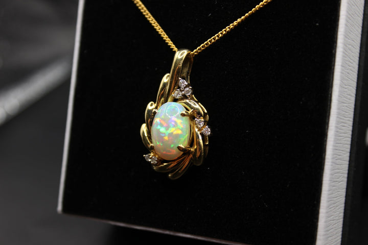Australian Natural Solid Opal Pendant in 18k Yellow Gold Setting Pendant Australian Opal House