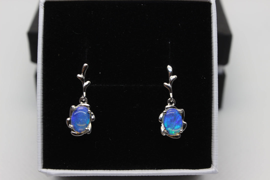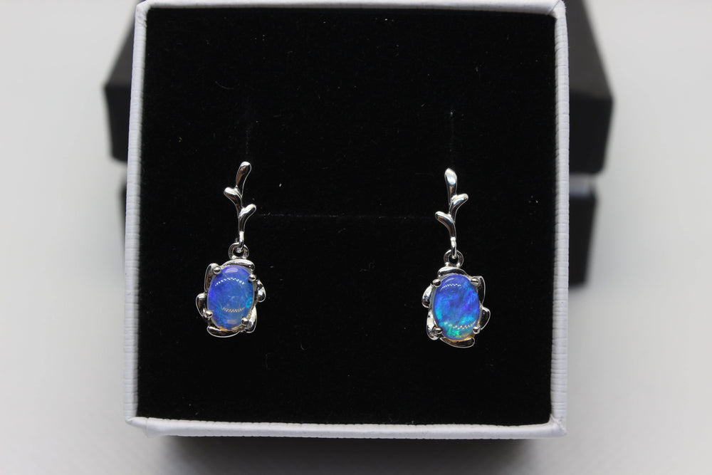 Australian Natural Solid Crystal Opal Hanging Earrings Sterling Silver Setting