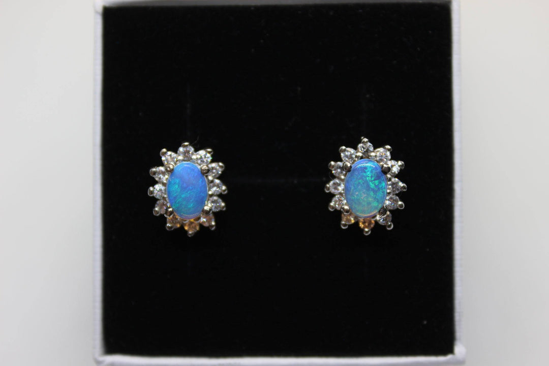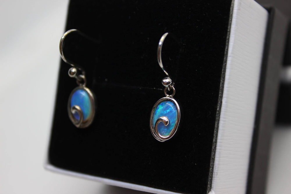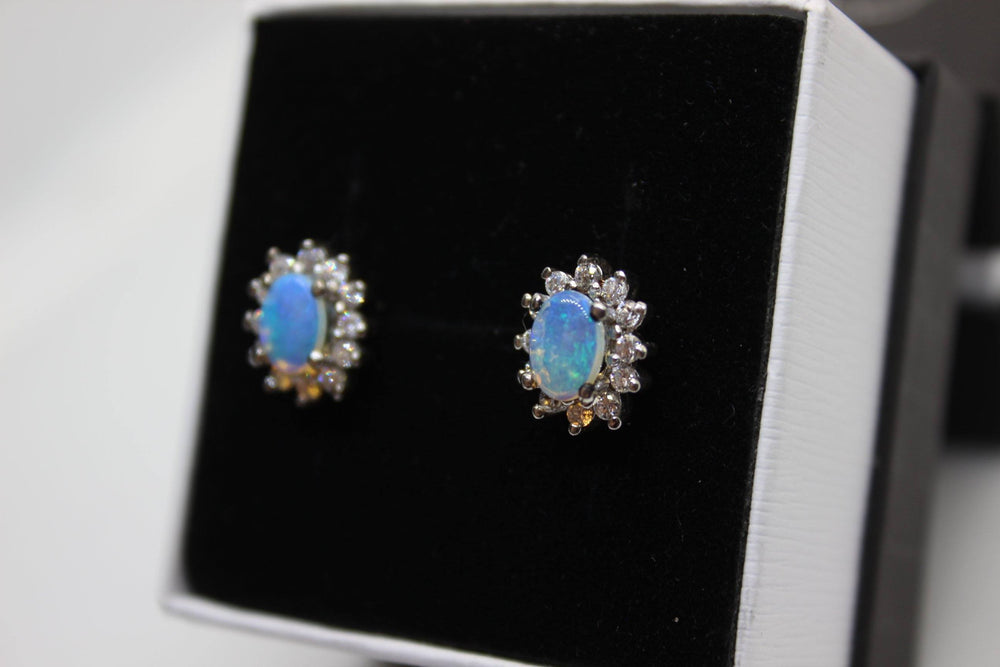 Australian Natural Solid Crystal Opal Earrings Sterling Silver Setting