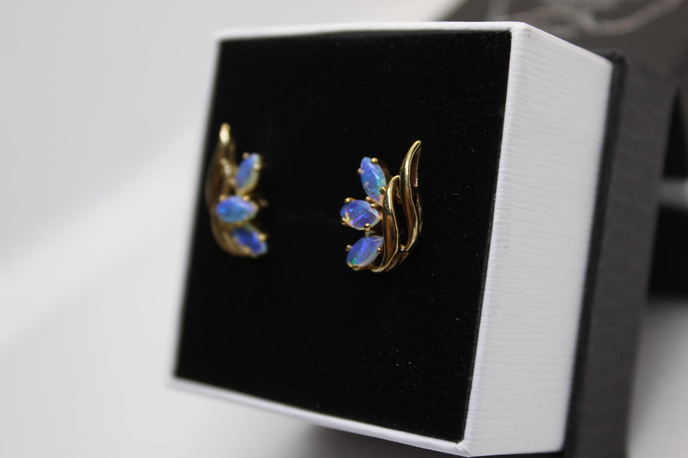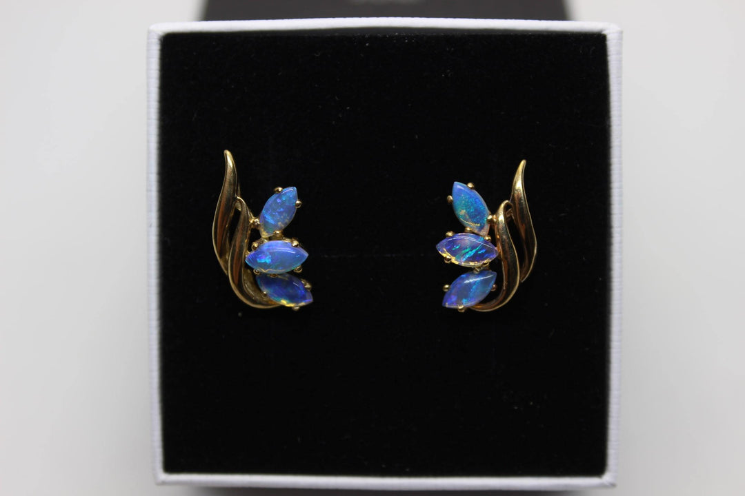 Australian Natural Solid Crystal Opal Earrings 18K Yellow Gold