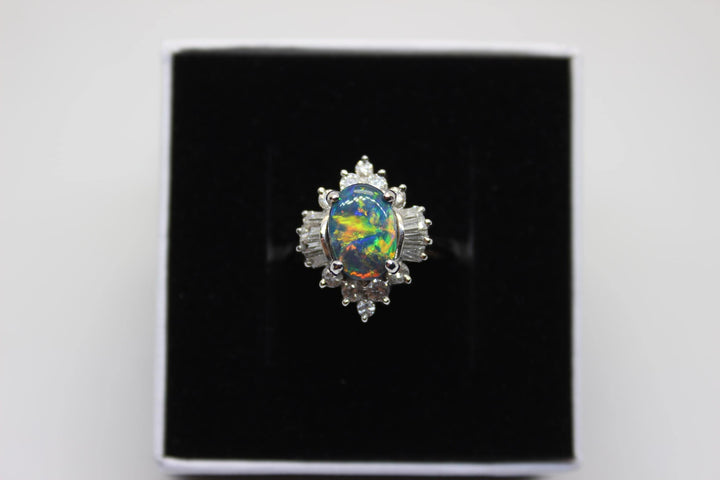 Australian Black Opal Ring in 18K White Gold Rings Australian Opal House