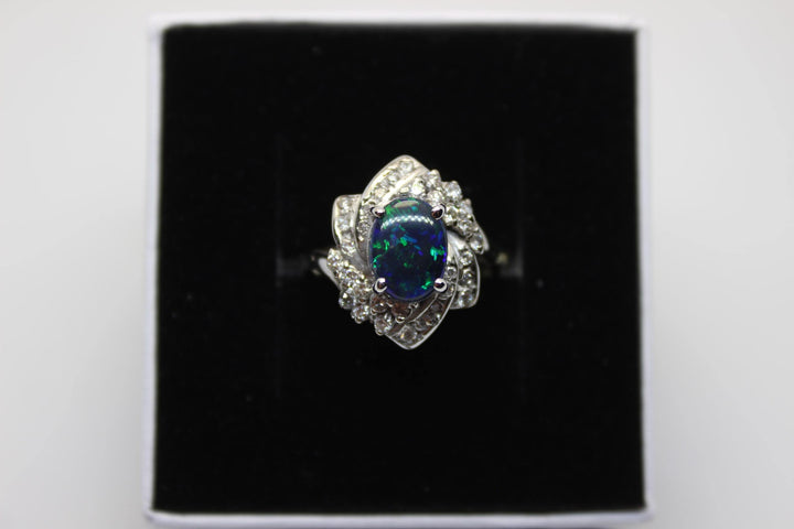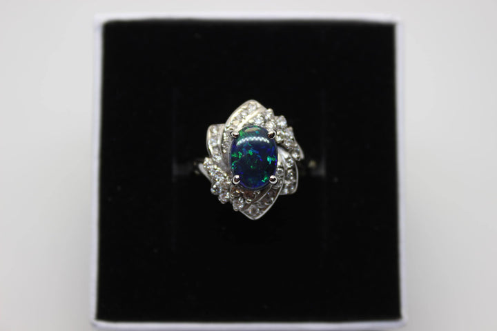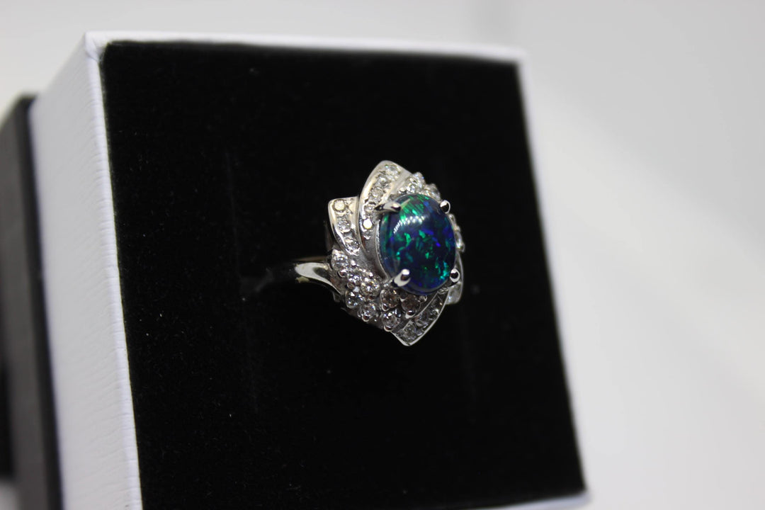 Australian Black Opal Ring in White Gold 18k Rings Australian Opal House