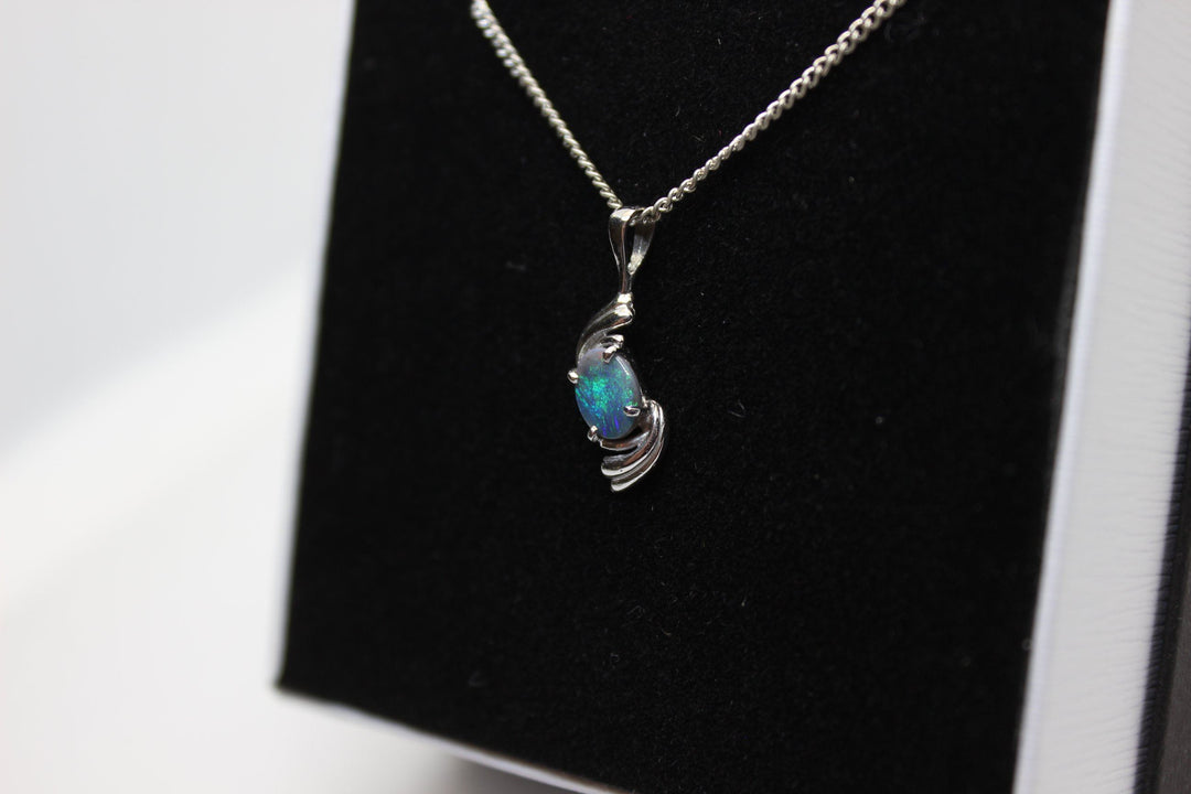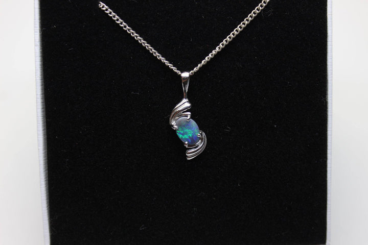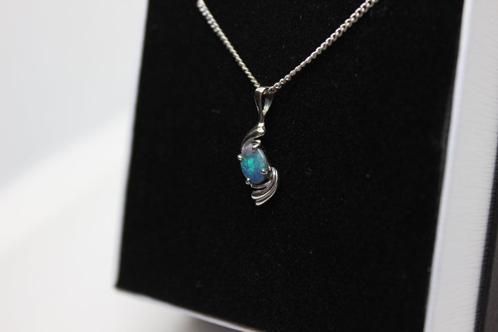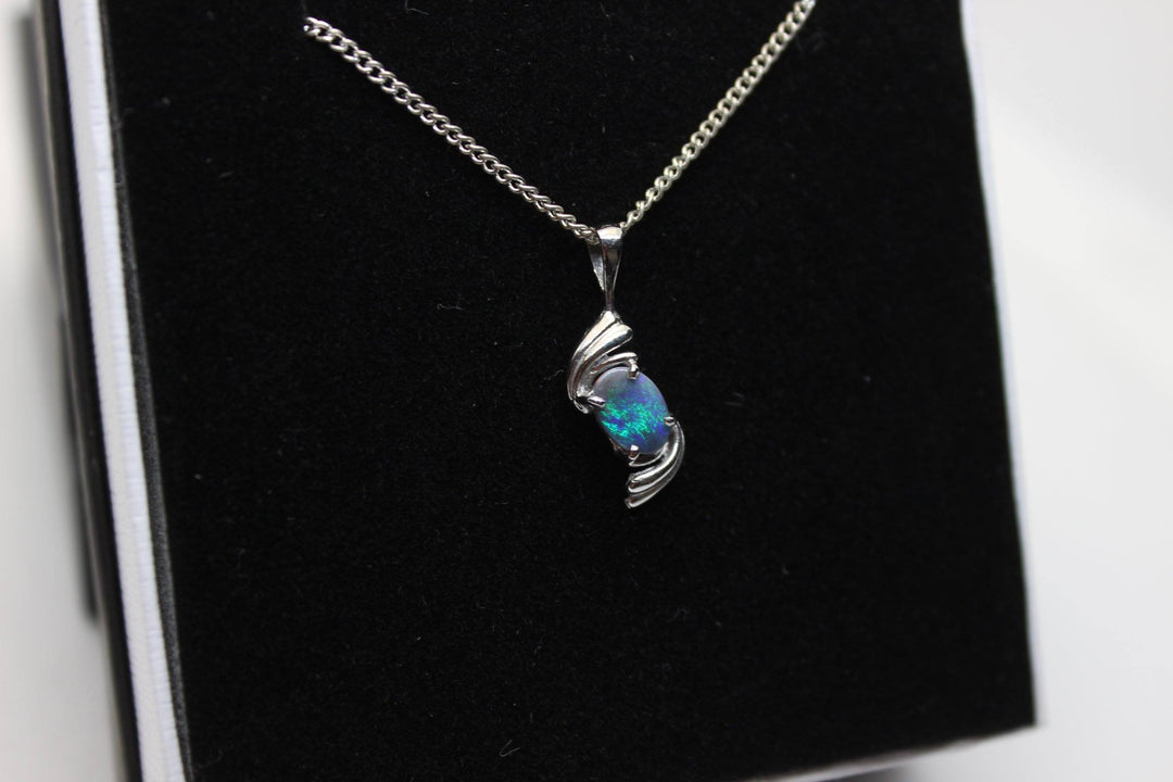 Australian Natural Black Opal Pendant in 18k White Gold Setting Pendant Australian Opal House