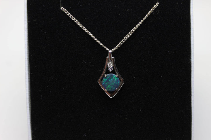 A Stunning Natural Black Opal Pendant in 18K White Gold Setting.