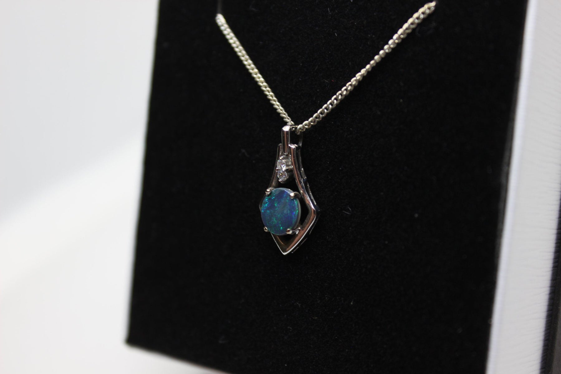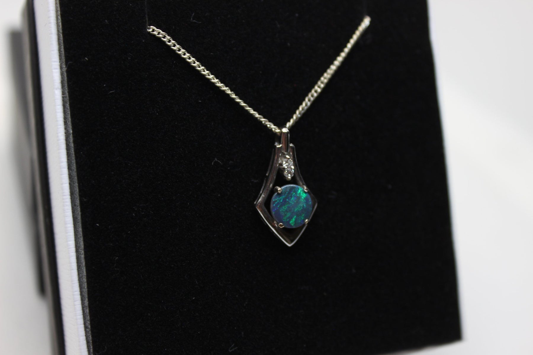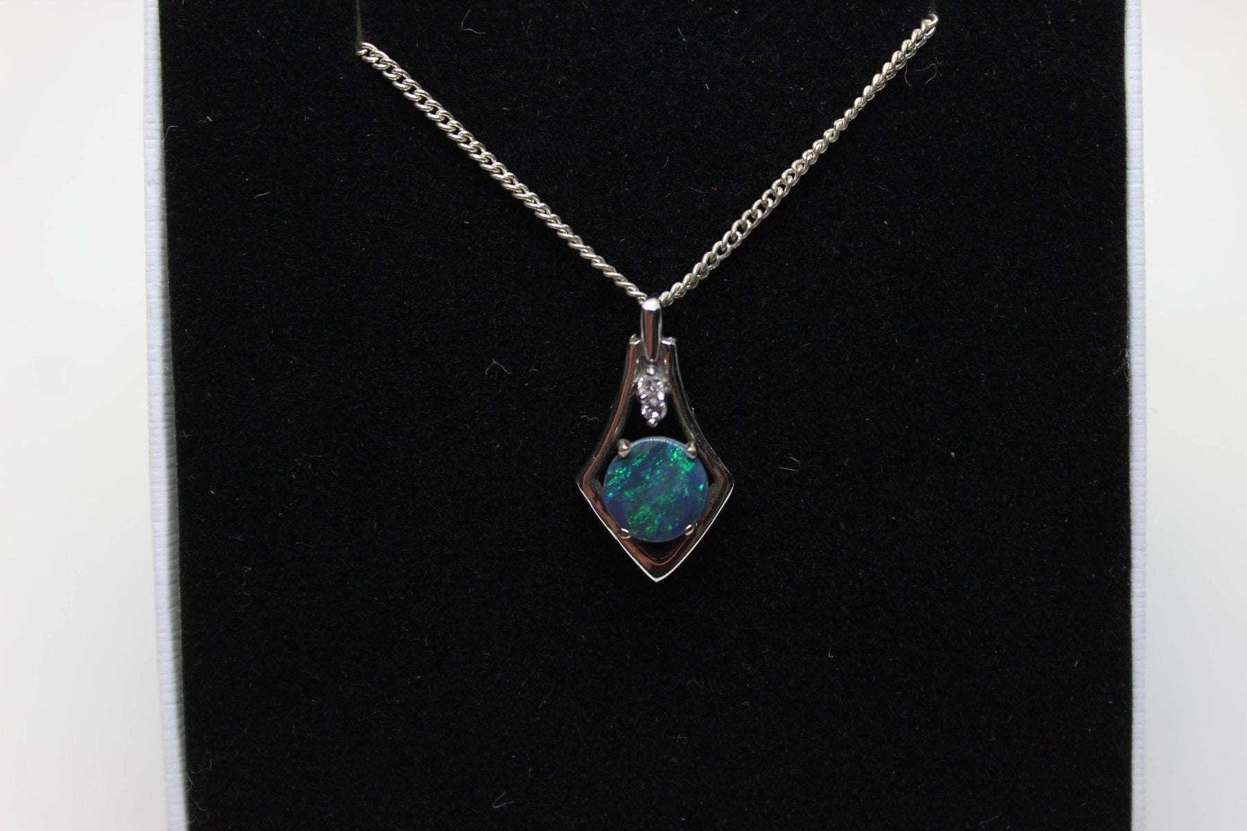 Australian Natural Black Opal Pendant in 18k White Gold Setting Pendant Australian Opal House