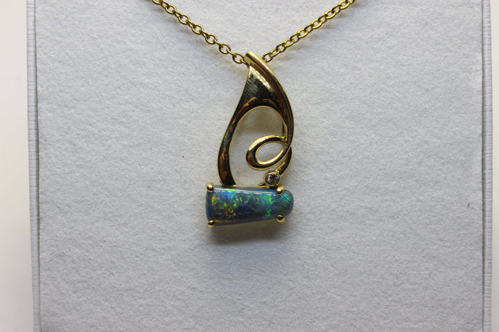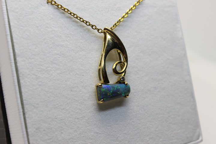 Australian Natural Black Opal Pendant in 18k Yellow Gold Setting Pendant Australian Opal House