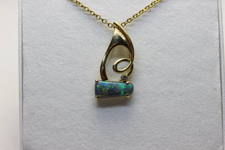 Australian Natural Black Opal Pendant in 18k Yellow Gold Setting