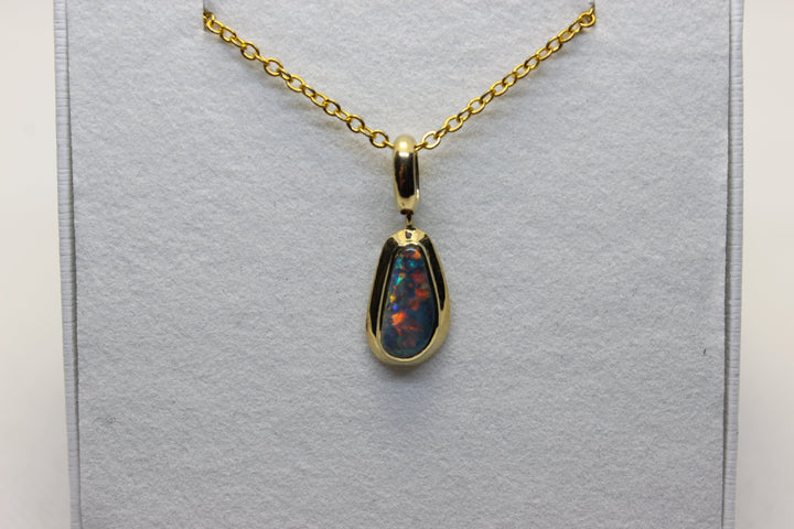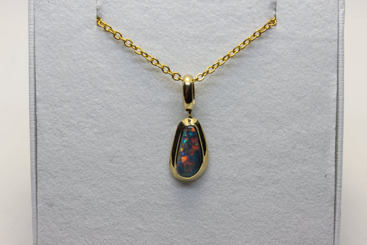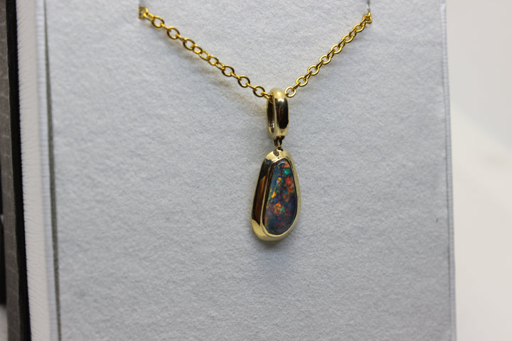 Australian Natural Black Opal Pendant in 18k Yellow Gold Setting