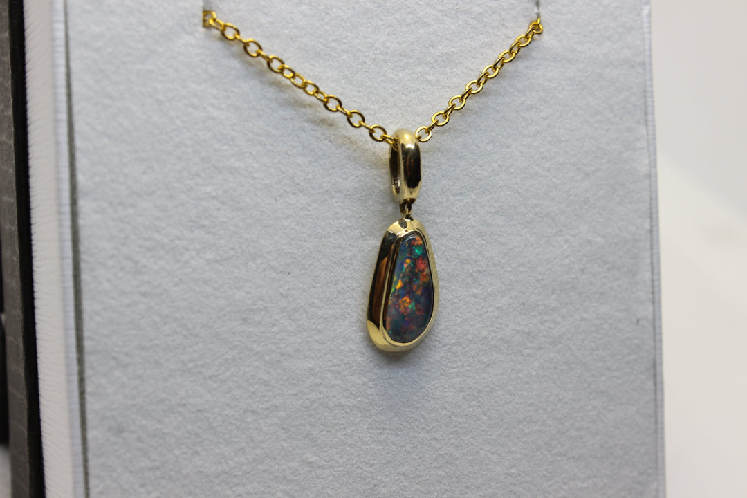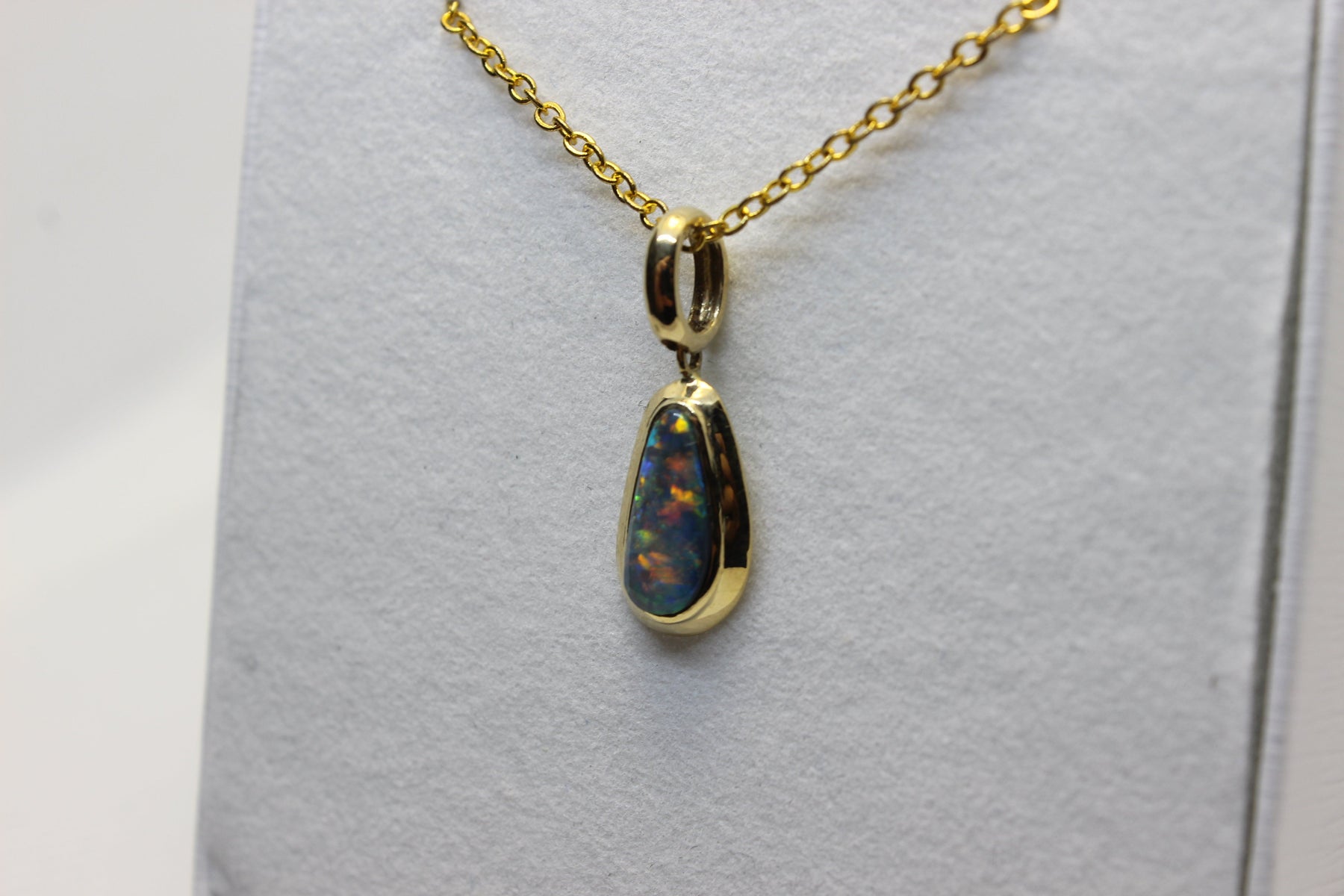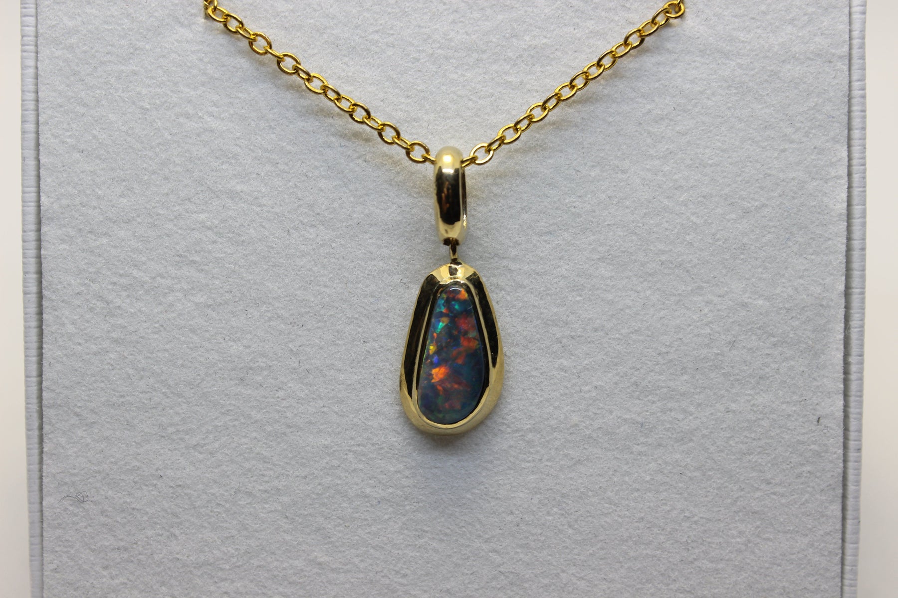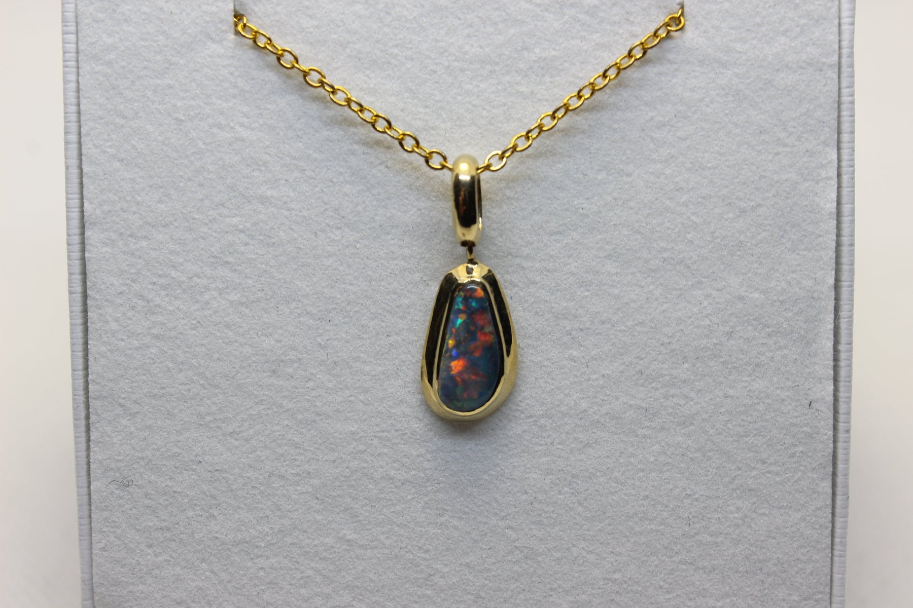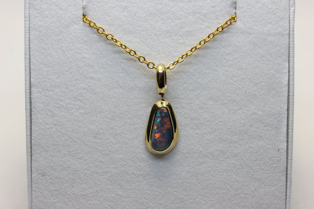 Australian Natural Black Opal Pendant in 18k Yellow Gold Setting Pendant Australian Opal House