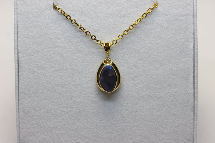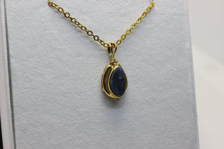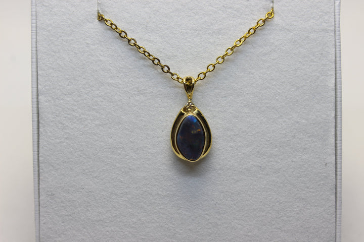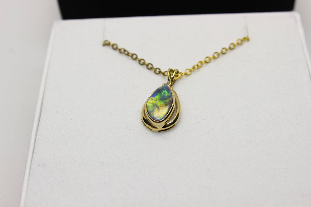 Australian Natural Black Opal Pendant in 18k Yellow Gold Setting
