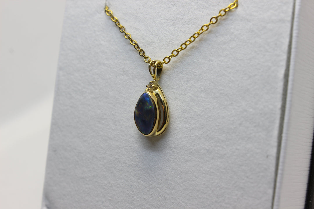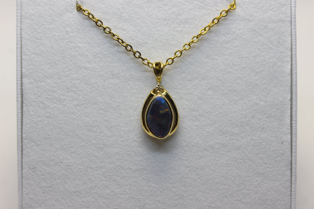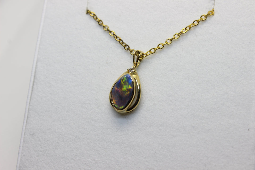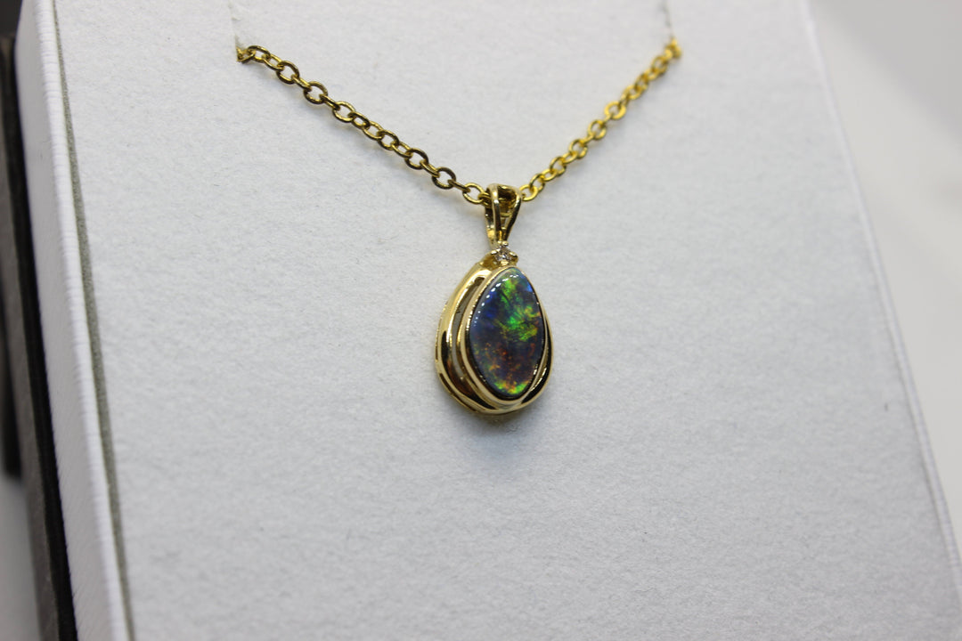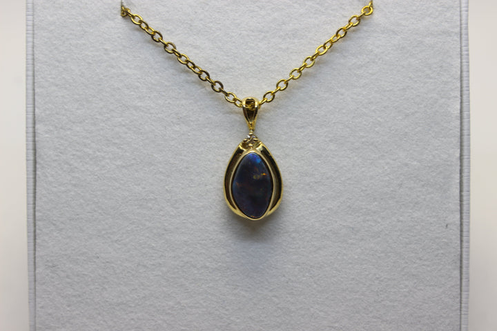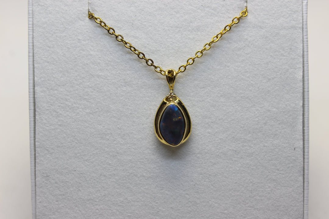 Australian Natural Black Opal Pendant in 18k Yellow Gold Setting Pendant Australian Opal House