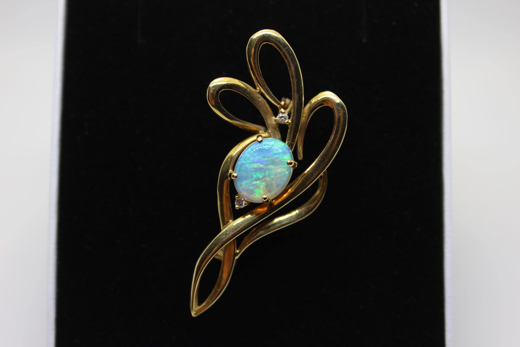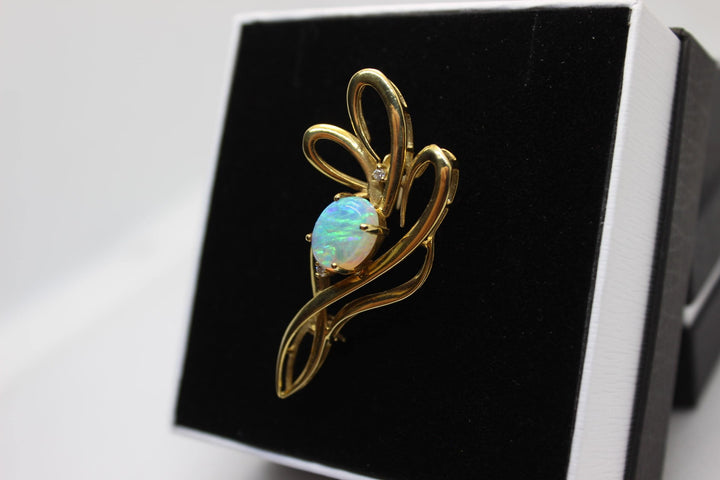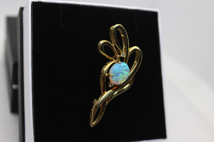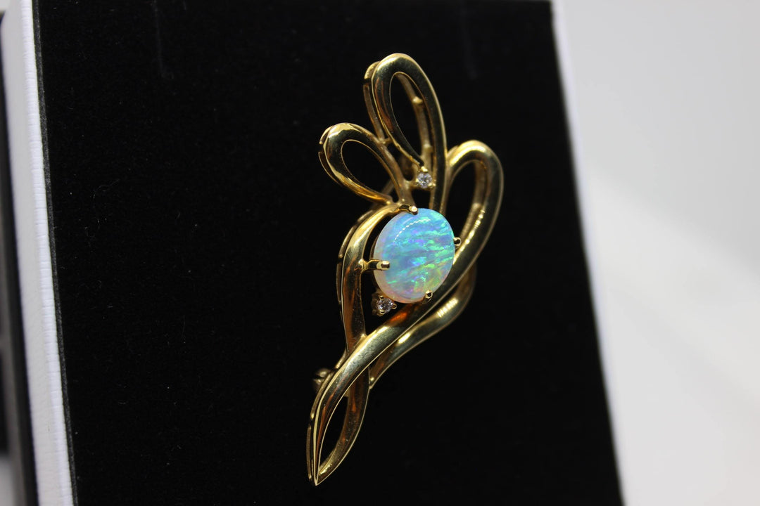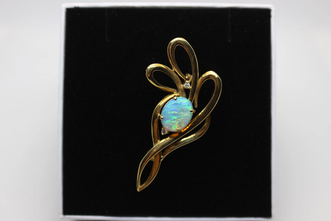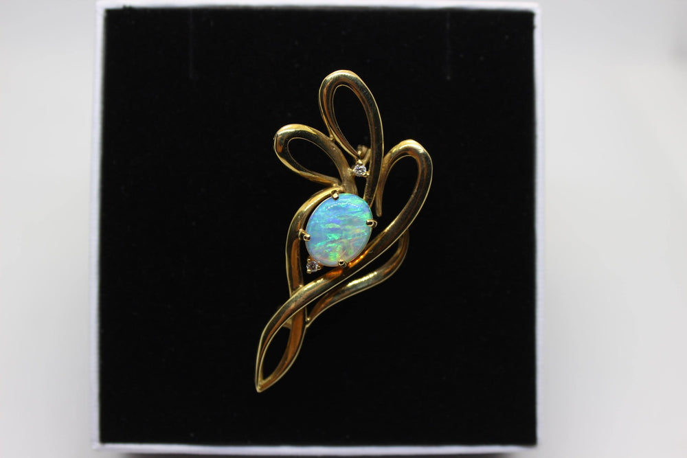 Australian Natural Crystal Opal Brooch in 18k Yellow Gold Setting Brooch Australian Opal House