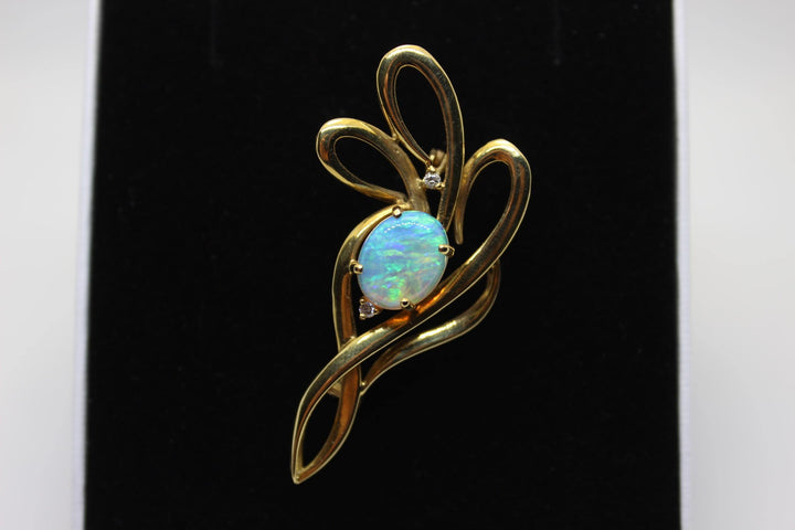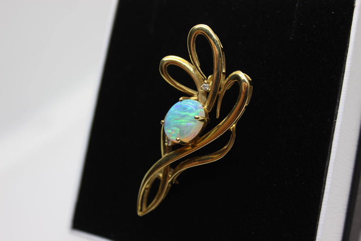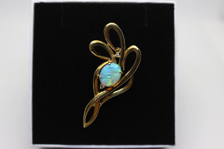 Australian Natural Crystal Opal Brooch in 18k Yellow Gold Setting