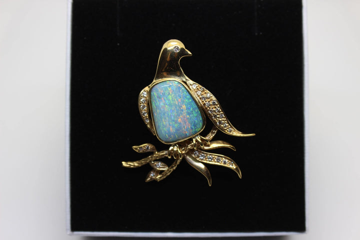 Australian Natural Crystal Opal Brooch in 18k Yellow Gold Setting Brooch Australian Opal House