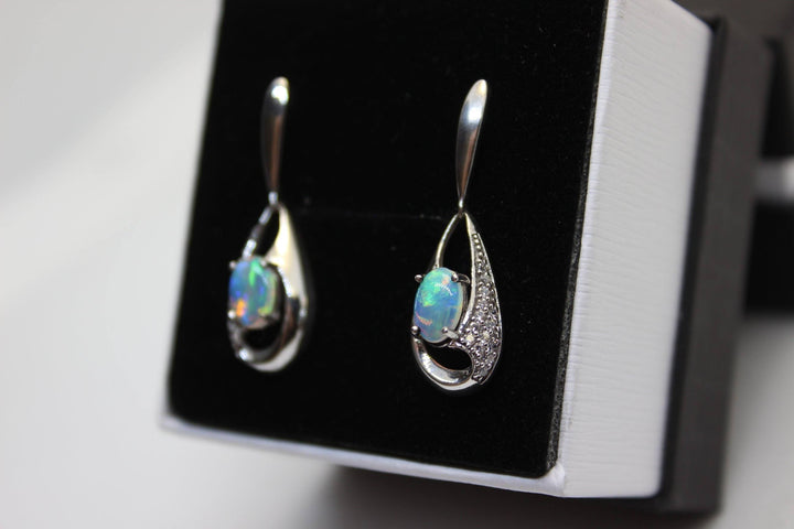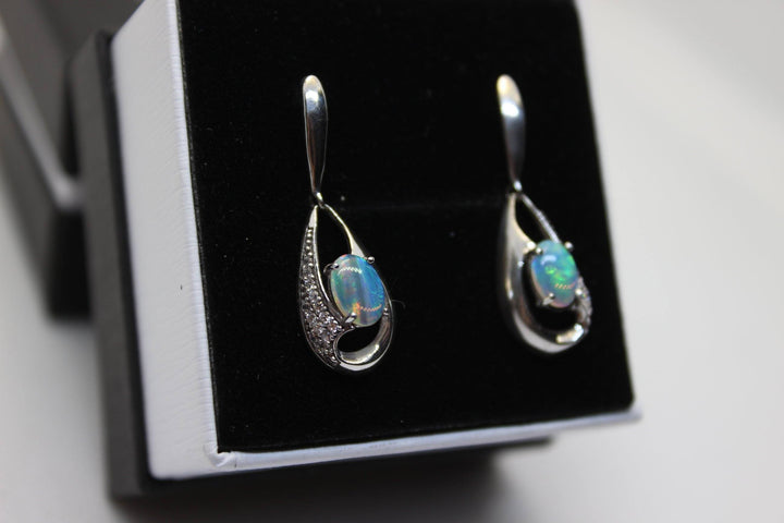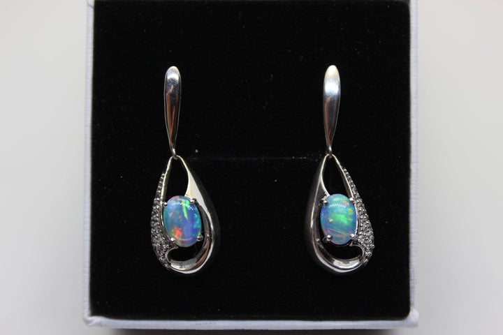Australian Natural Solid Crystal Opal Earrings Sterling Silver Setting Earrings Australian Opal House