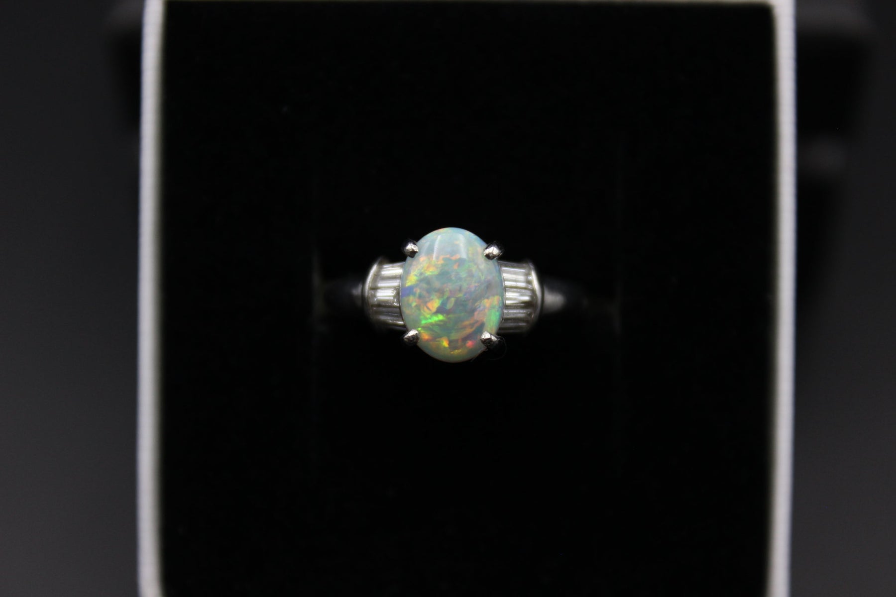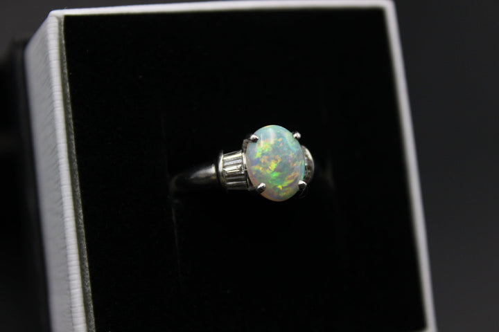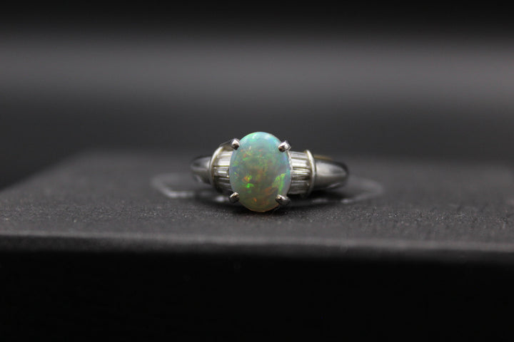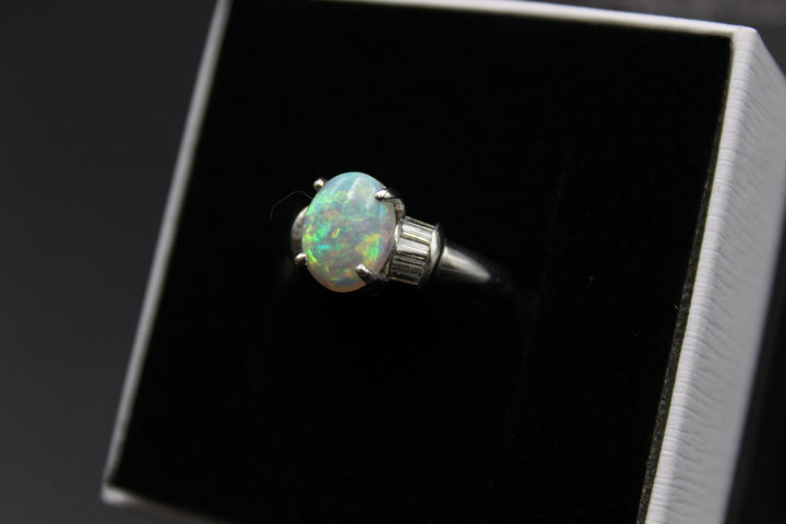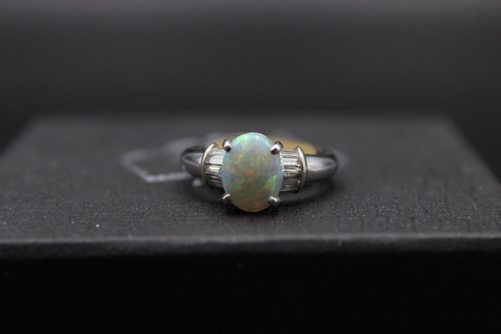 • Gem: One Australian Natural Solid Fire Opal Ring 18k White Gold Setting  - Gem Quality: A+