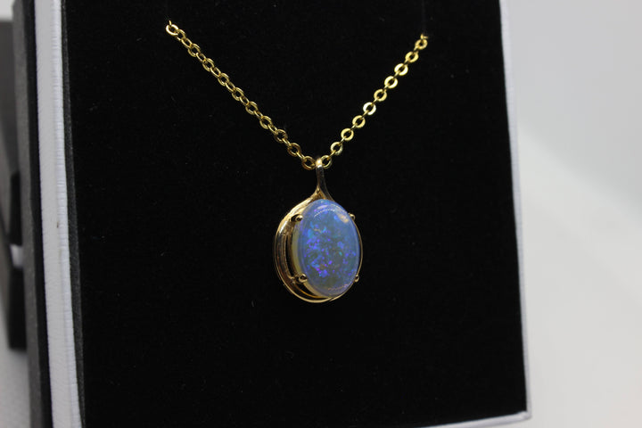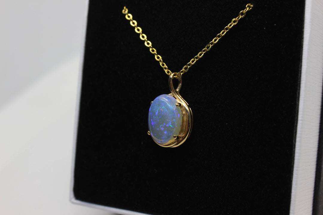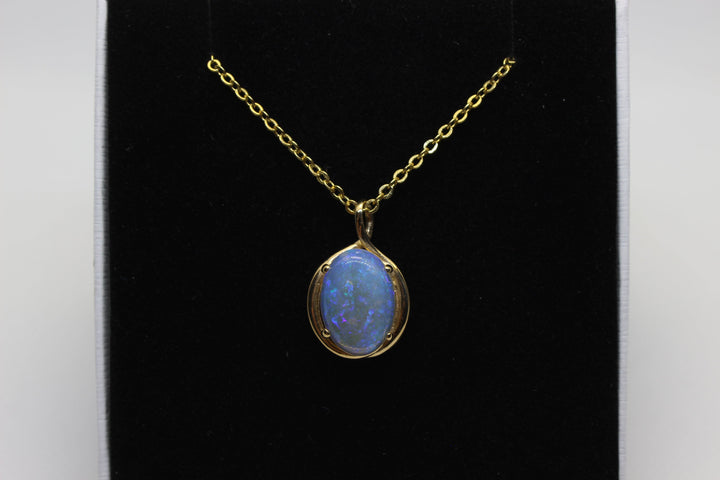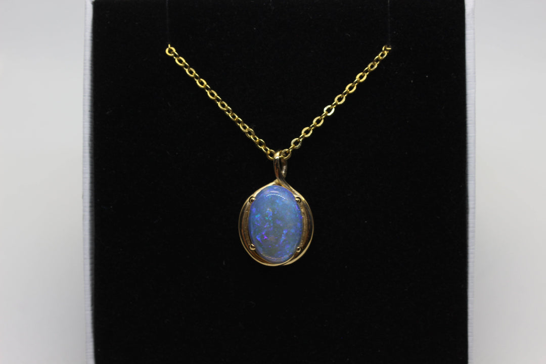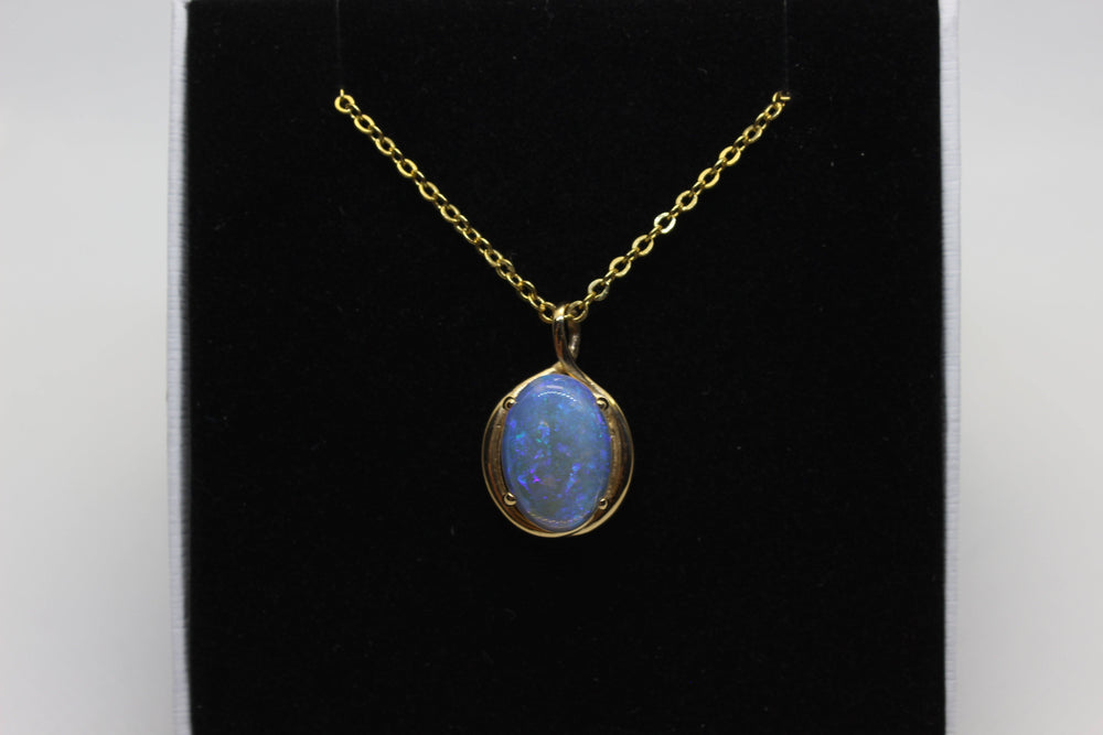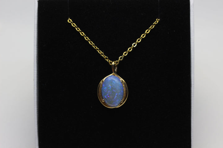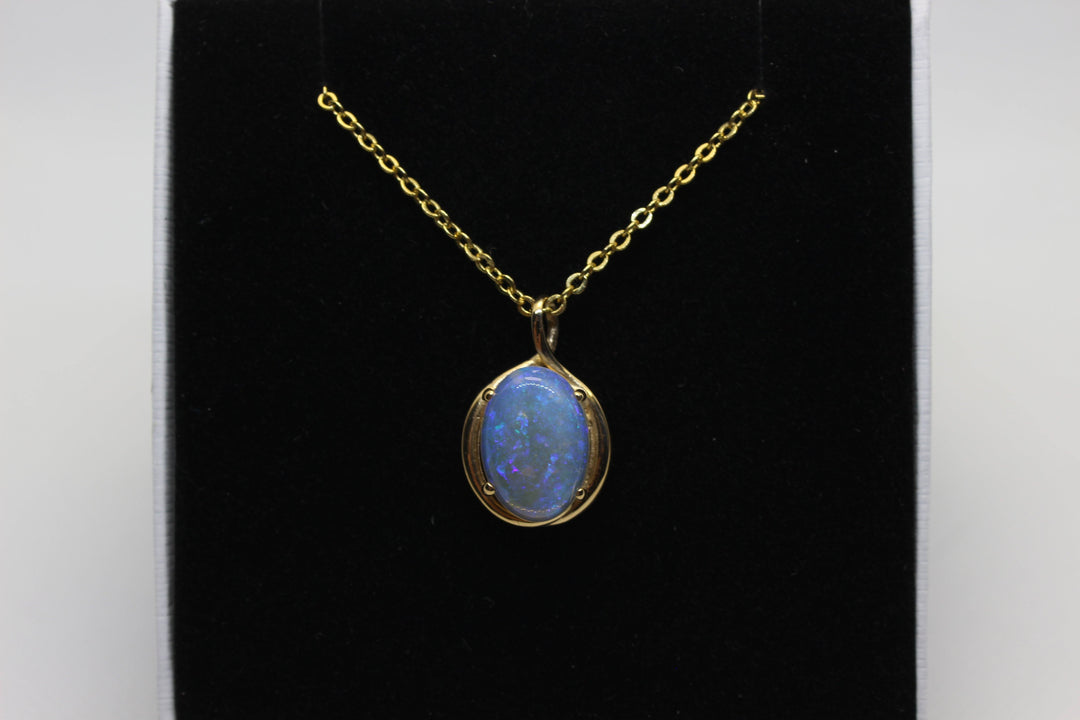 Australian Natural Solid Crystal Opal Pendant in 14k Yellow Gold Setting Pendant Australian Opal House