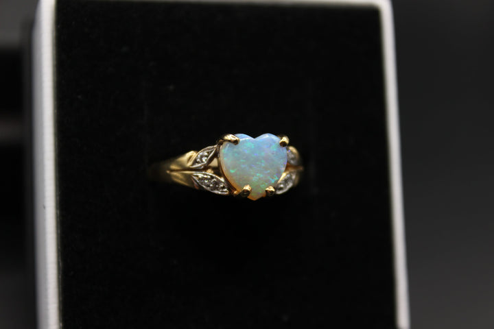 Australian Natural Solid Opal Ring 14k Yellow Gold Setting