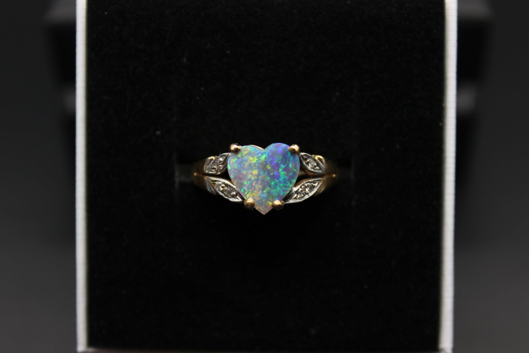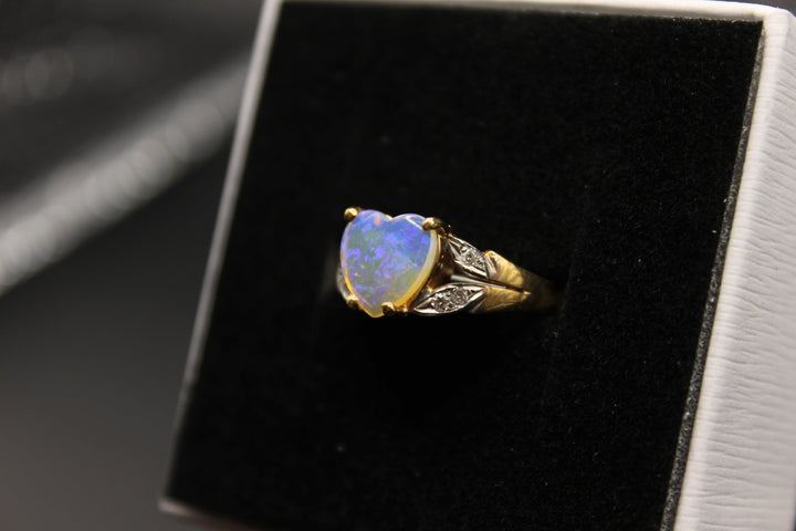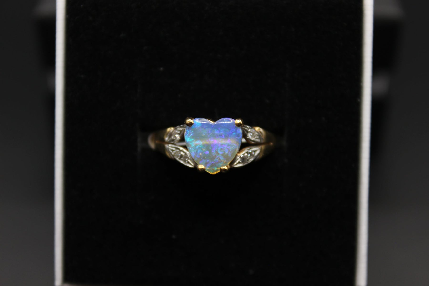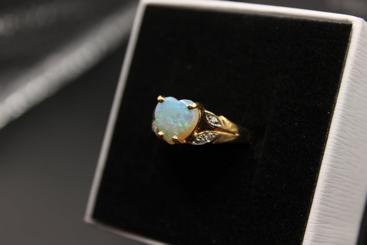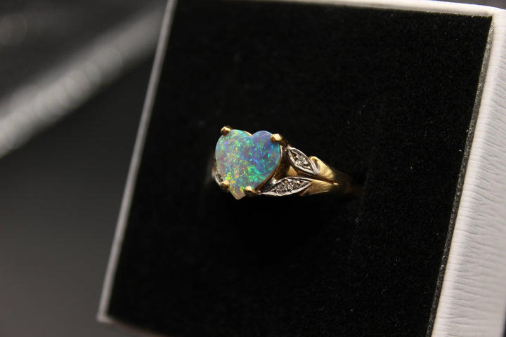 • Gem: One Australian Natural Solid Opal Ring 14k Yellow Gold Setting  - Gem Quality: A+