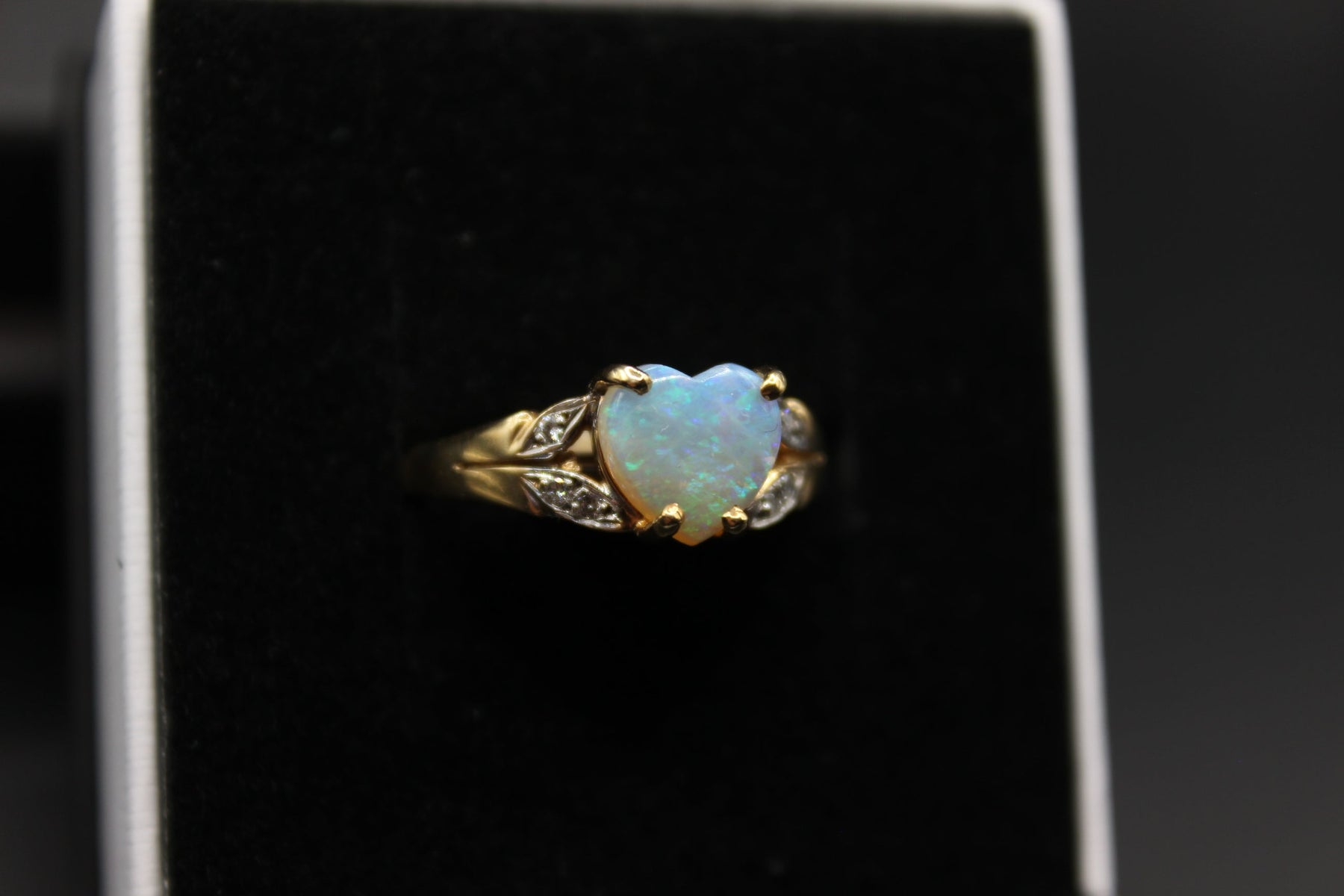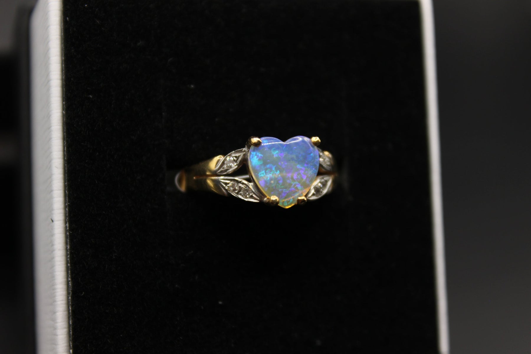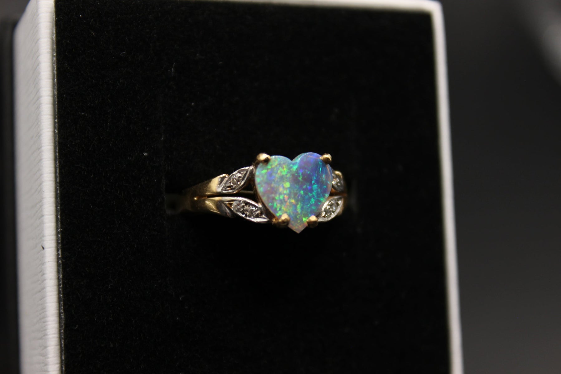 • Gem: One Australian Natural Solid Opal Ring 14k Yellow Gold Setting  - Gem Quality: A+