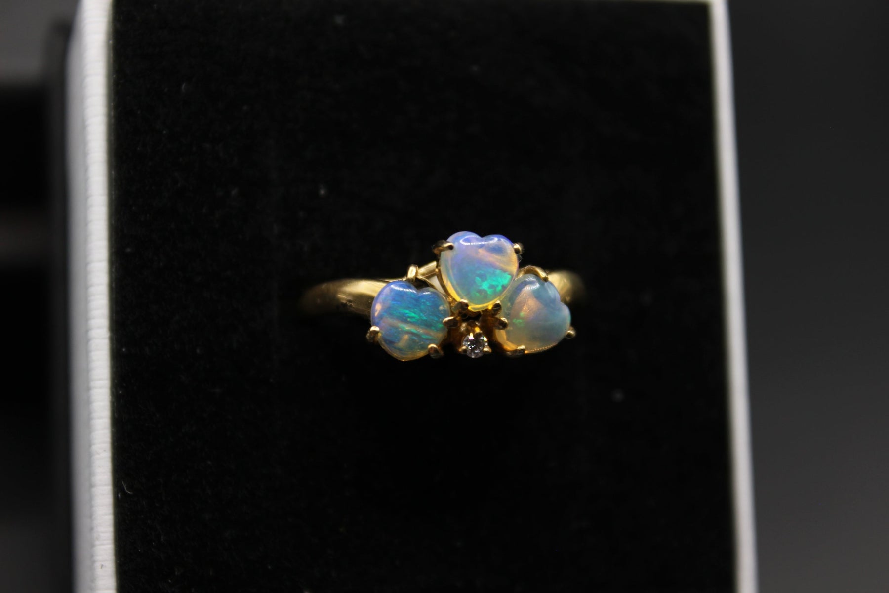 • Gem: One Australian Natural Solid Opal Ring 14k Yellow Gold Setting  - Gem Quality: A+