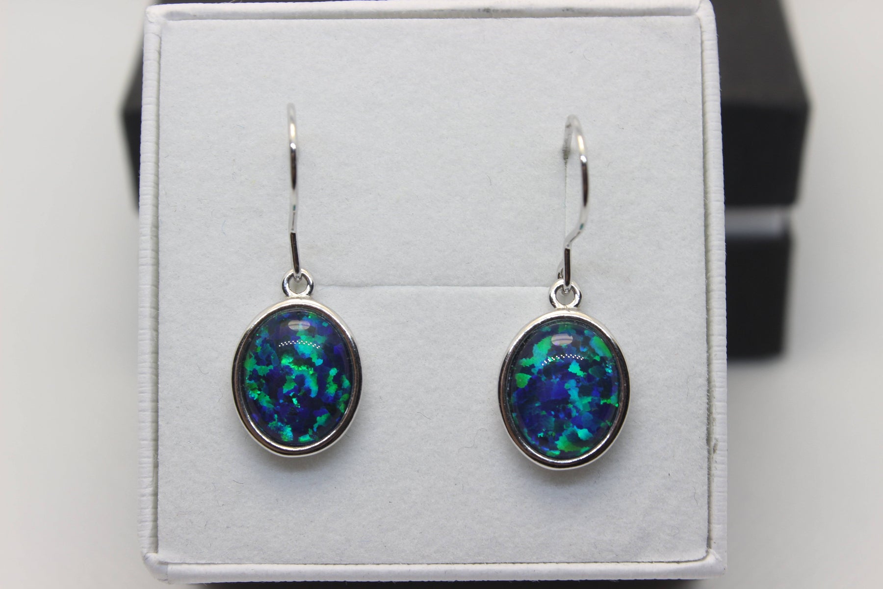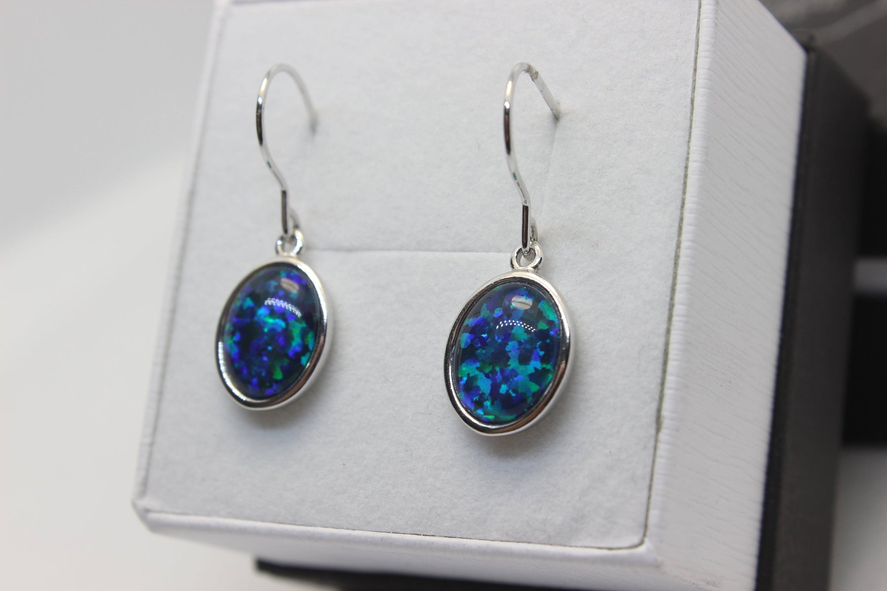 Australian Triplet Opal Hanging Earrings in Sterling Silver Setting Earrings Australian Opal House