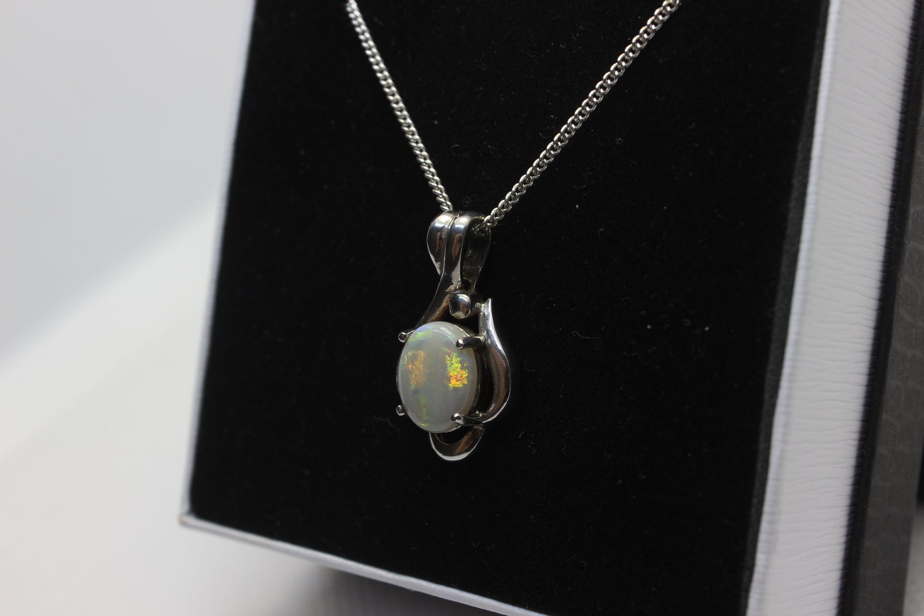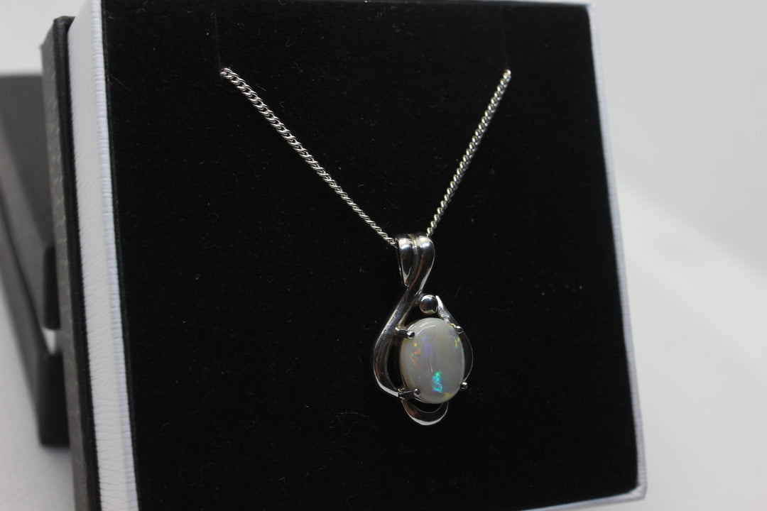 A Stunning Natural Solid Crystal Opal Pendant in Sterling Silver Setting.