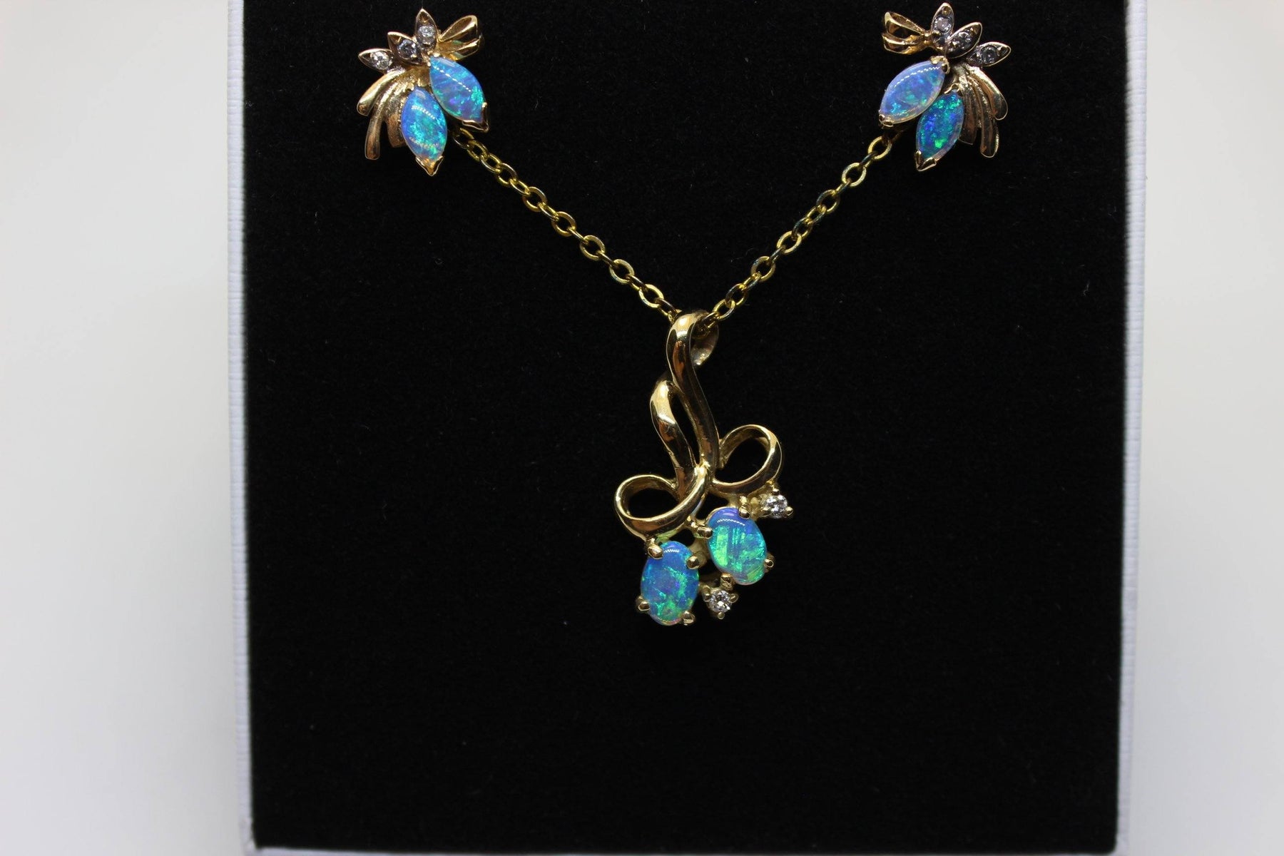 Australian Solid Opal Pendant in Yellow Gold Setting Set Australian Opal House