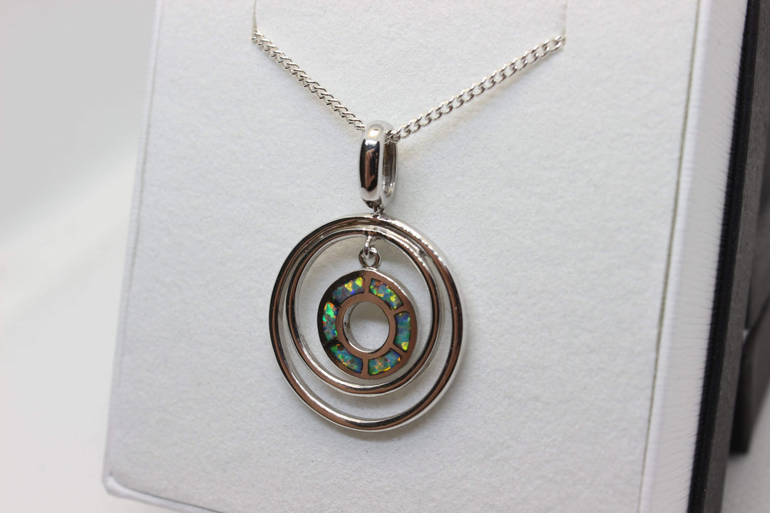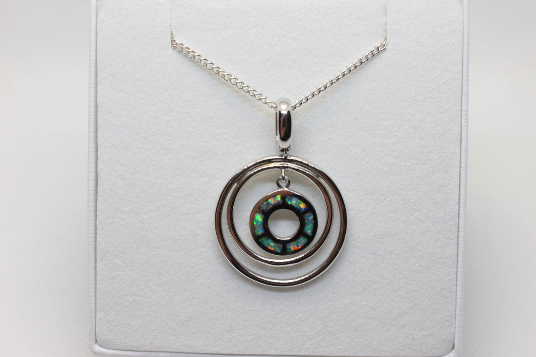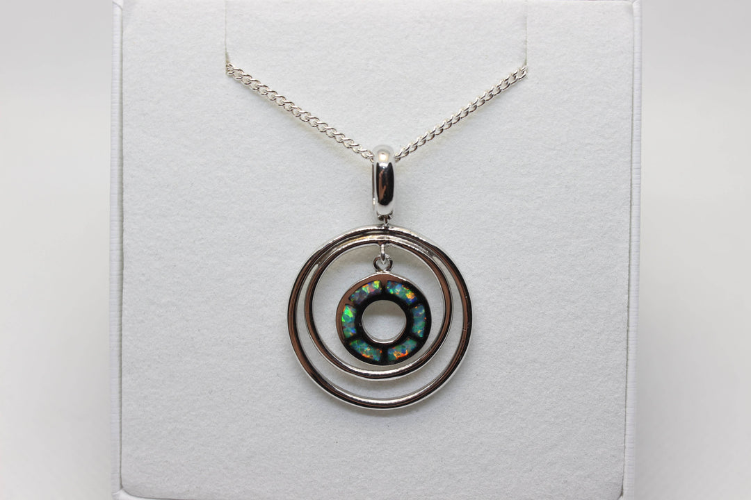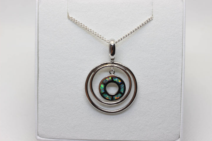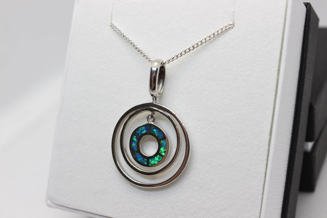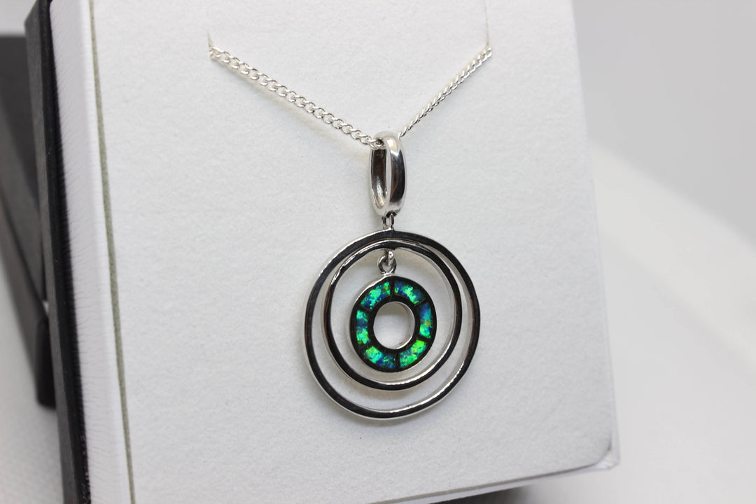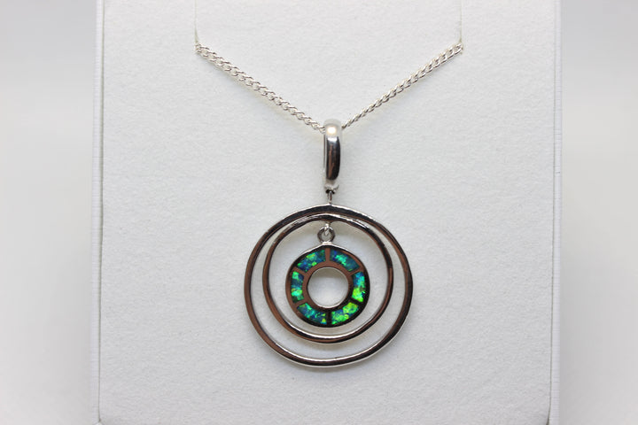 Australian Inlay Opal Pendant in Sterling Silver Setting Circle Pendant Australian Opal House Green