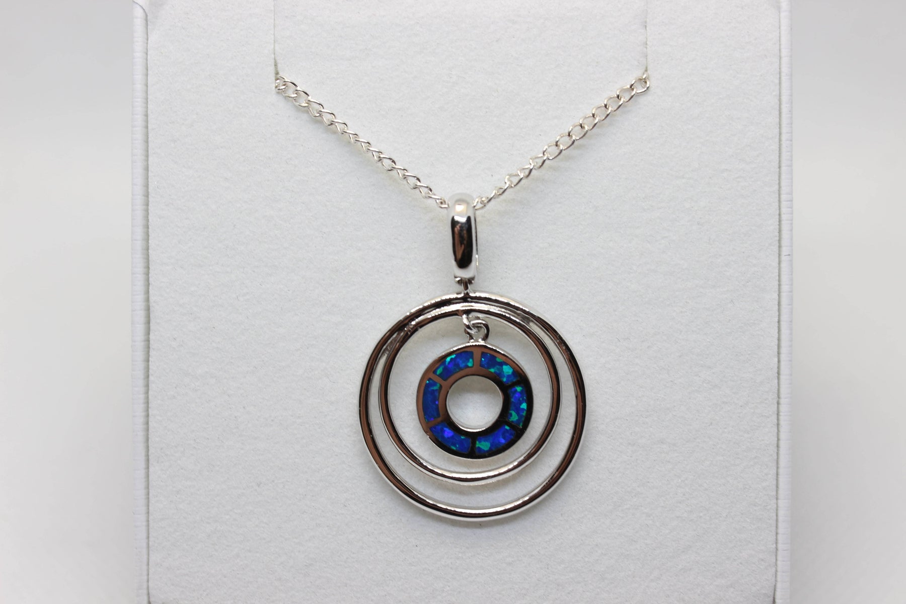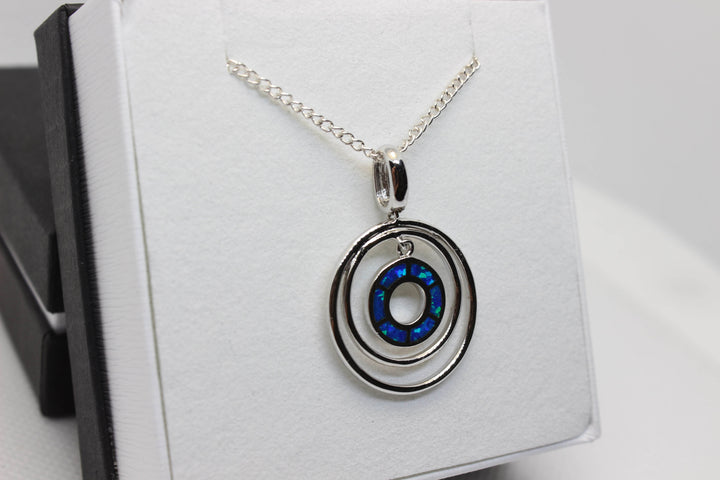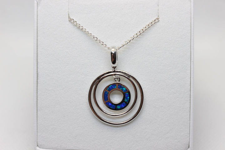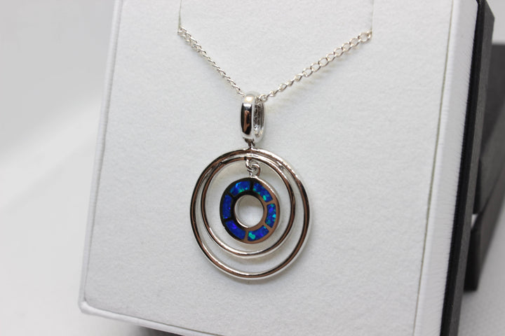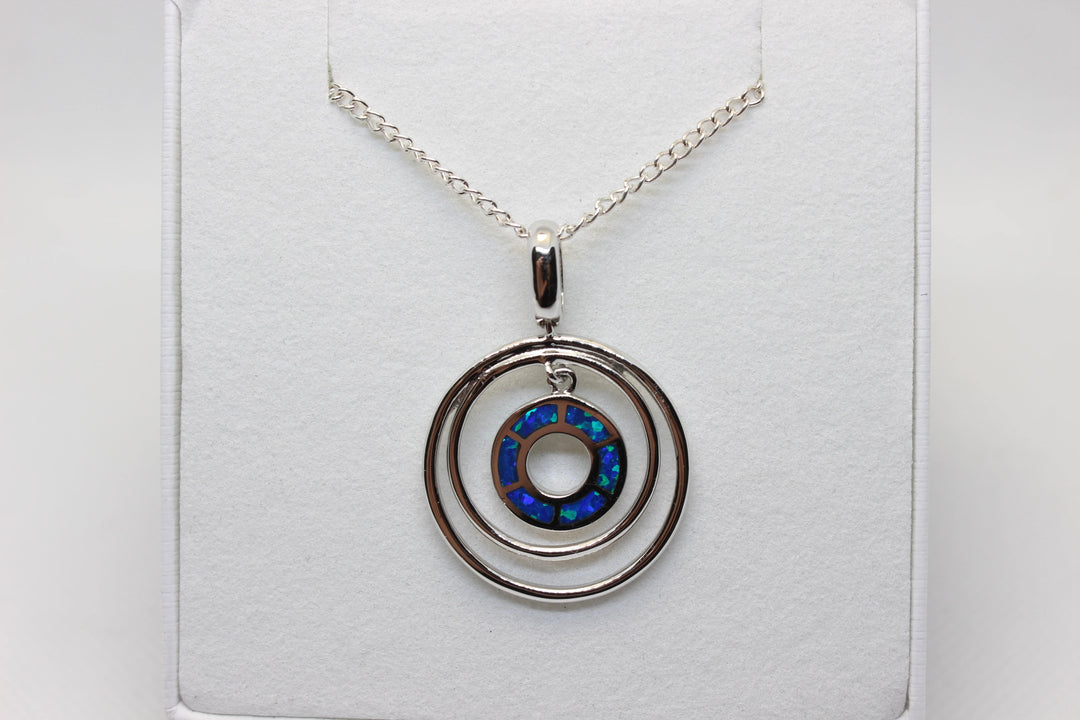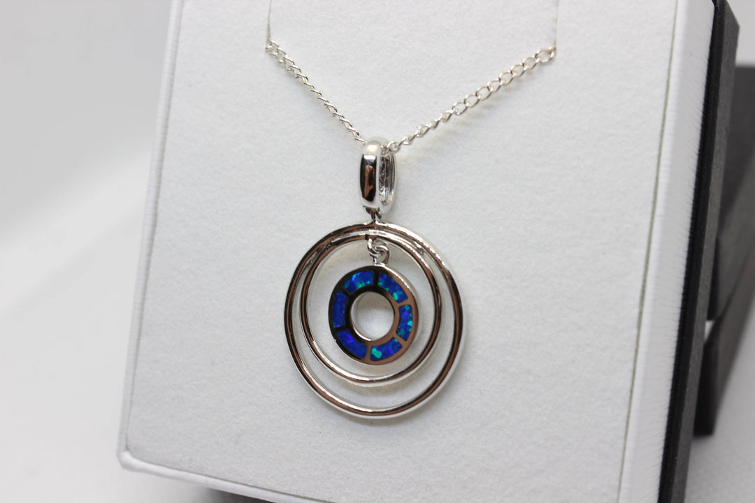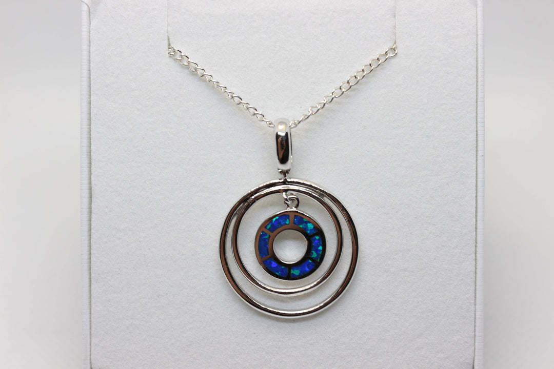 Australian Inlay Opal Pendant in Sterling Silver Setting Circle Pendant Australian Opal House Blue