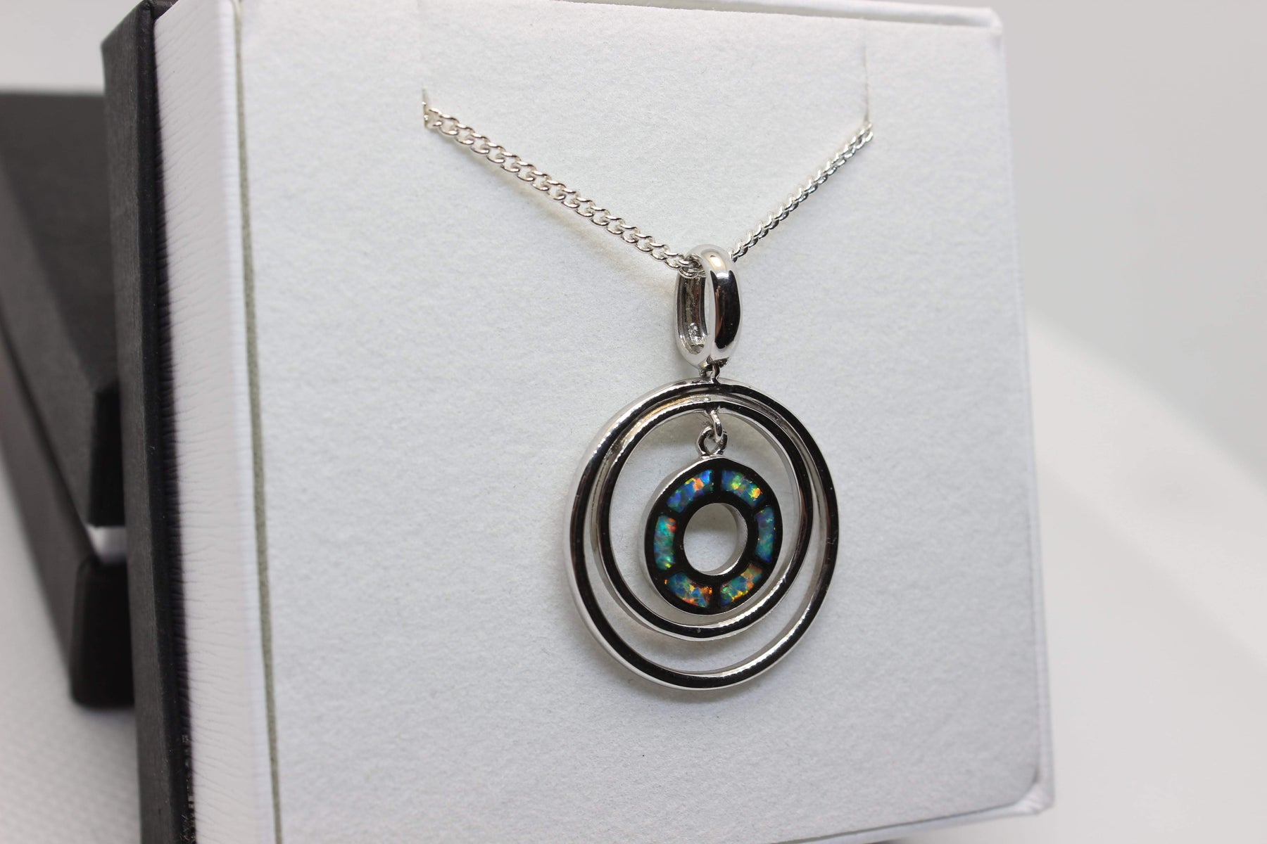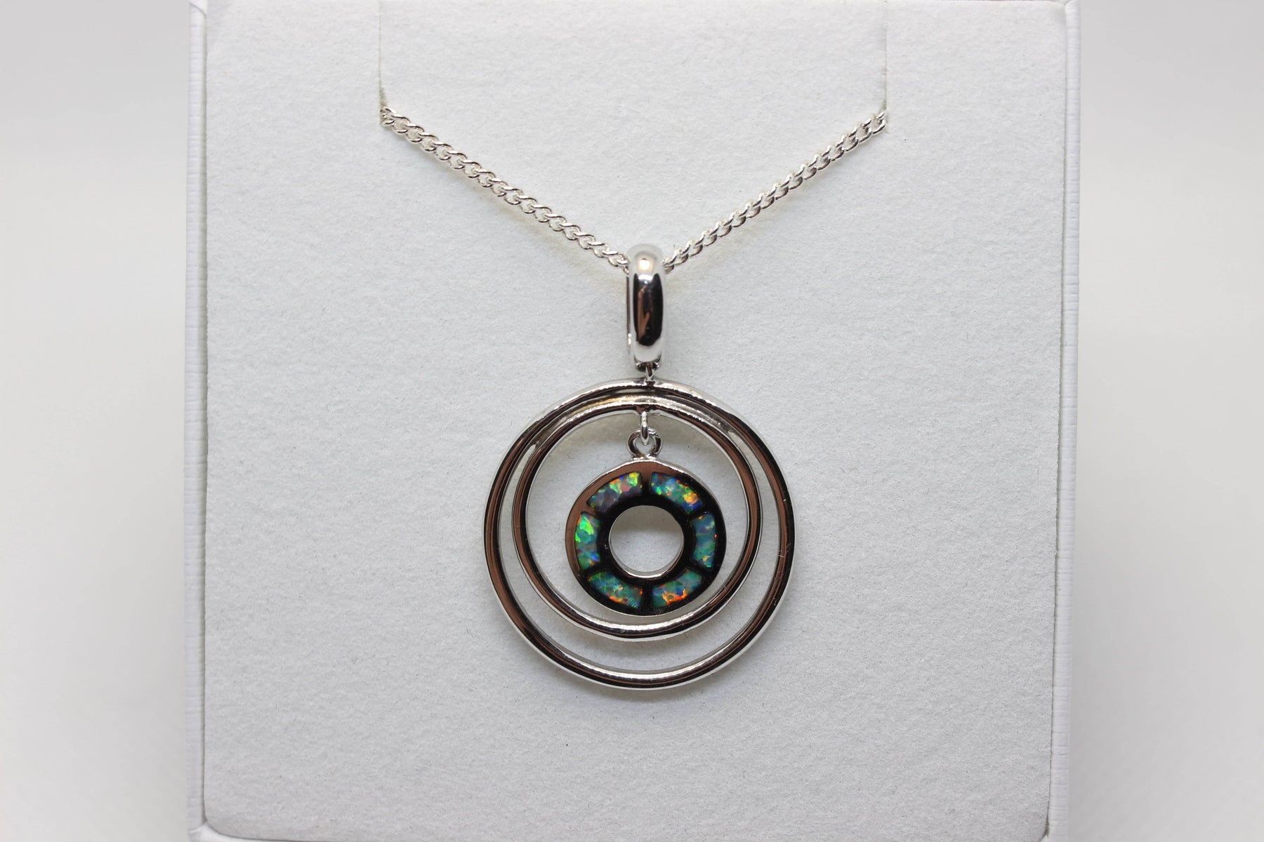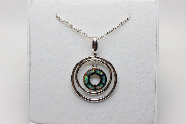 Australian Inlay Opal Pendant in Sterling Silver Setting Circle Pendant Australian Opal House