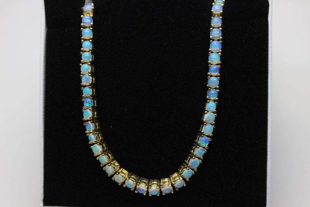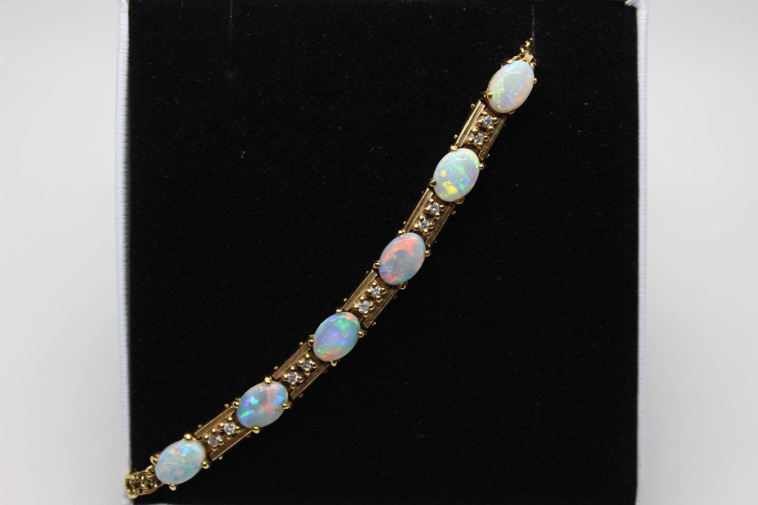 Australian Solid Opal Bracelet in 14k Yellow Gold Setting