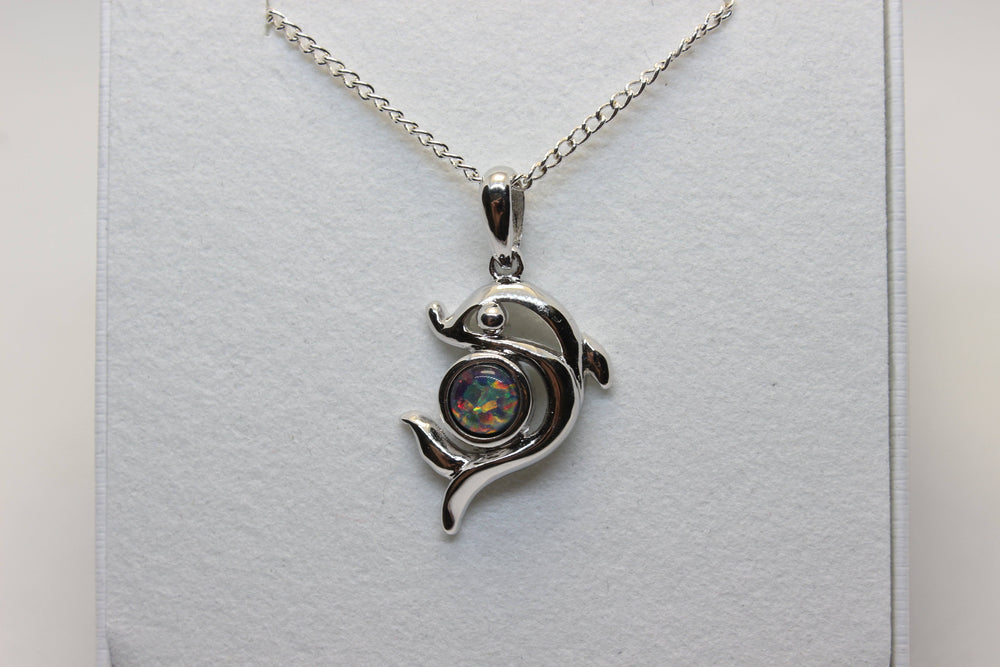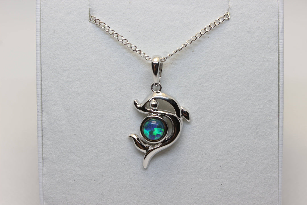 Australian Triplet Opal Pendant in Sterling Silver Dolphin Setting