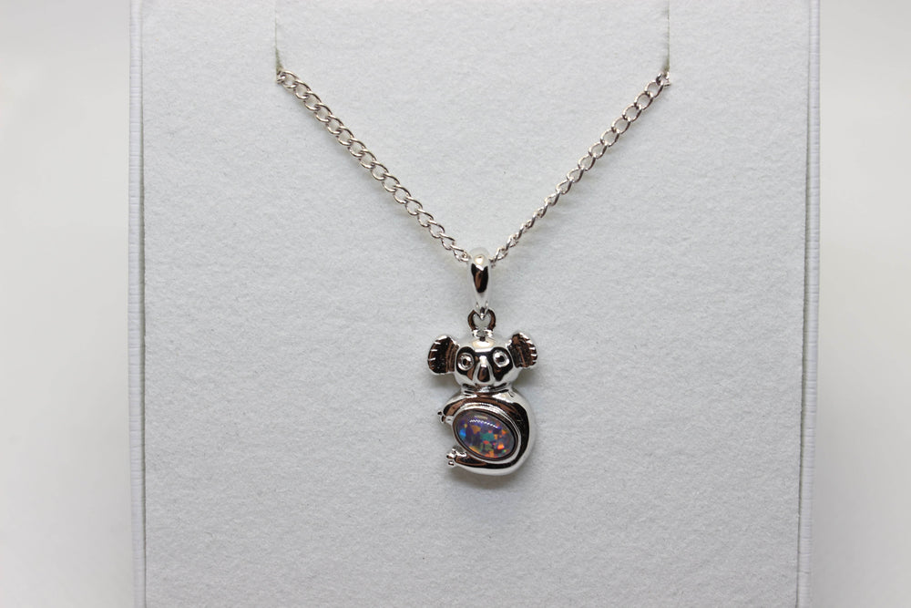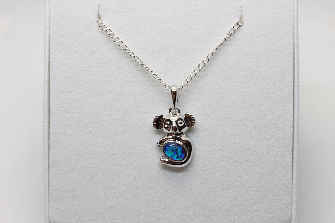 Australian Triplet Opal Pendant in Sterling Silver Setting Koala
