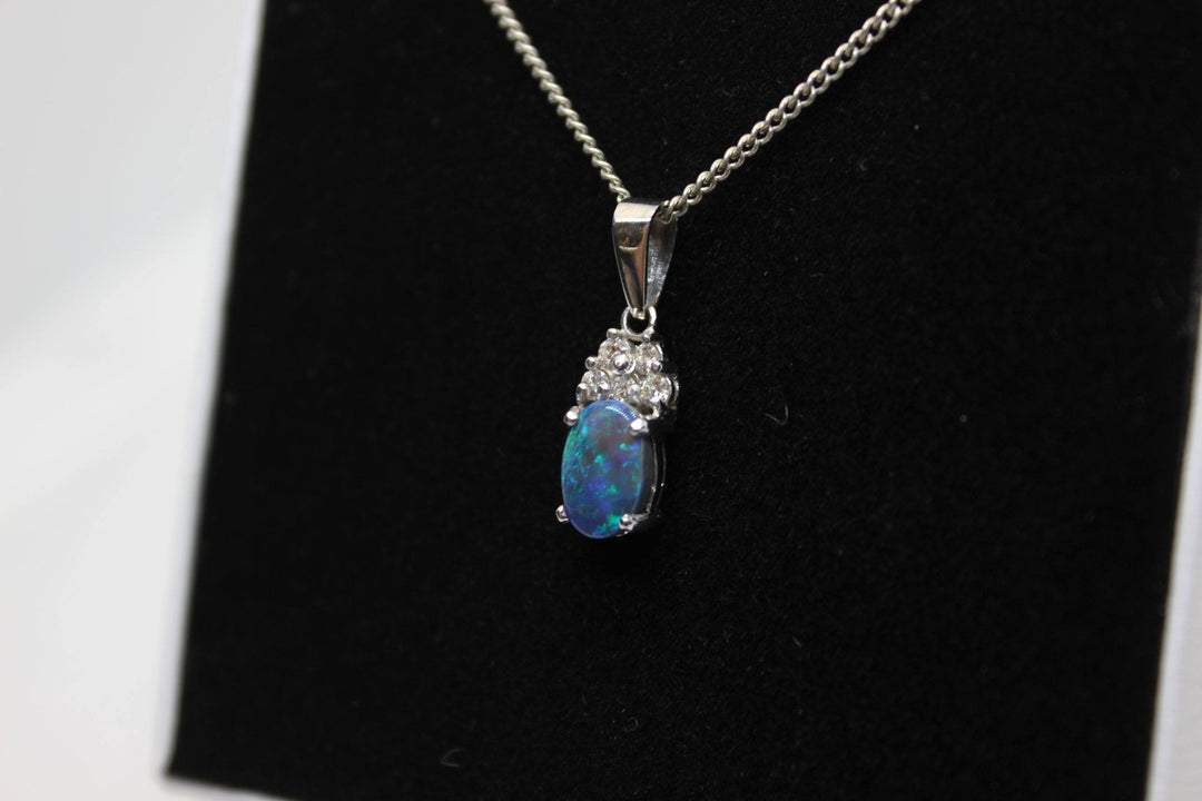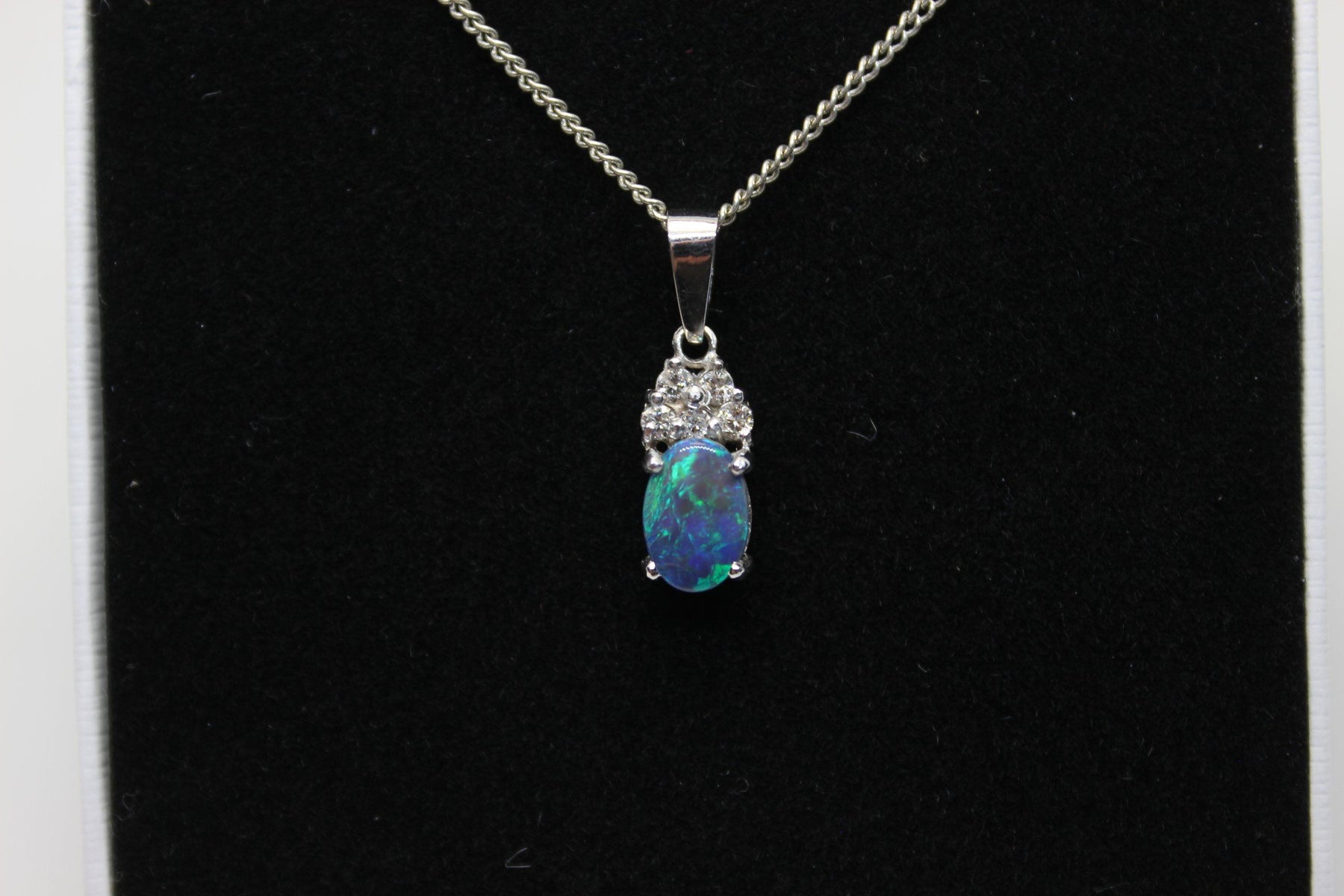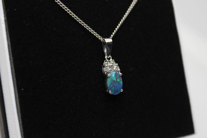 Australian Natural Black Opal Pendant in 18k White Gold Setting Pendant Australian Opal House