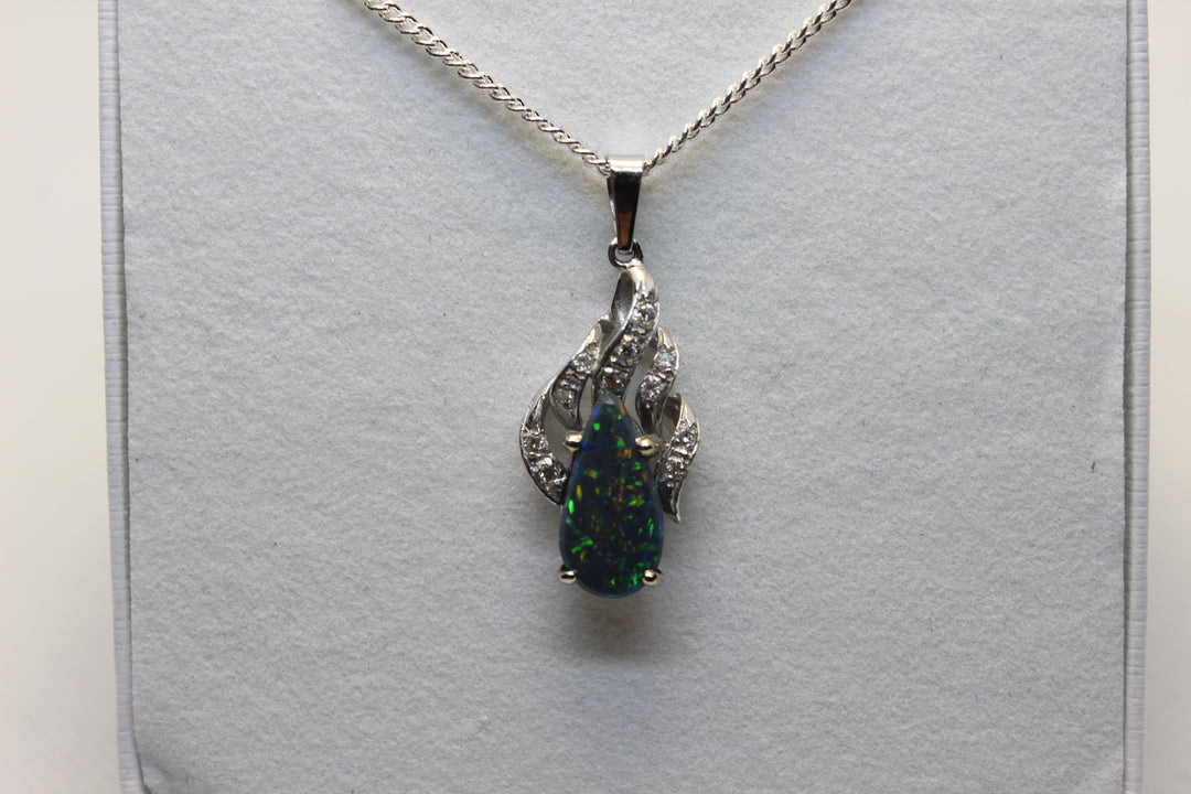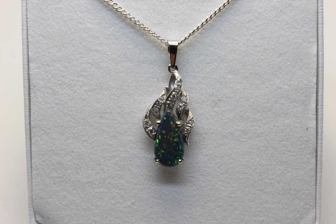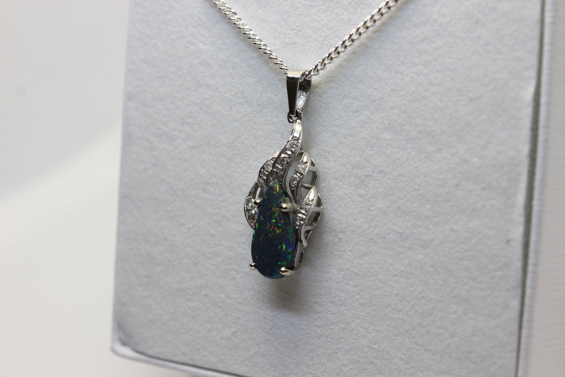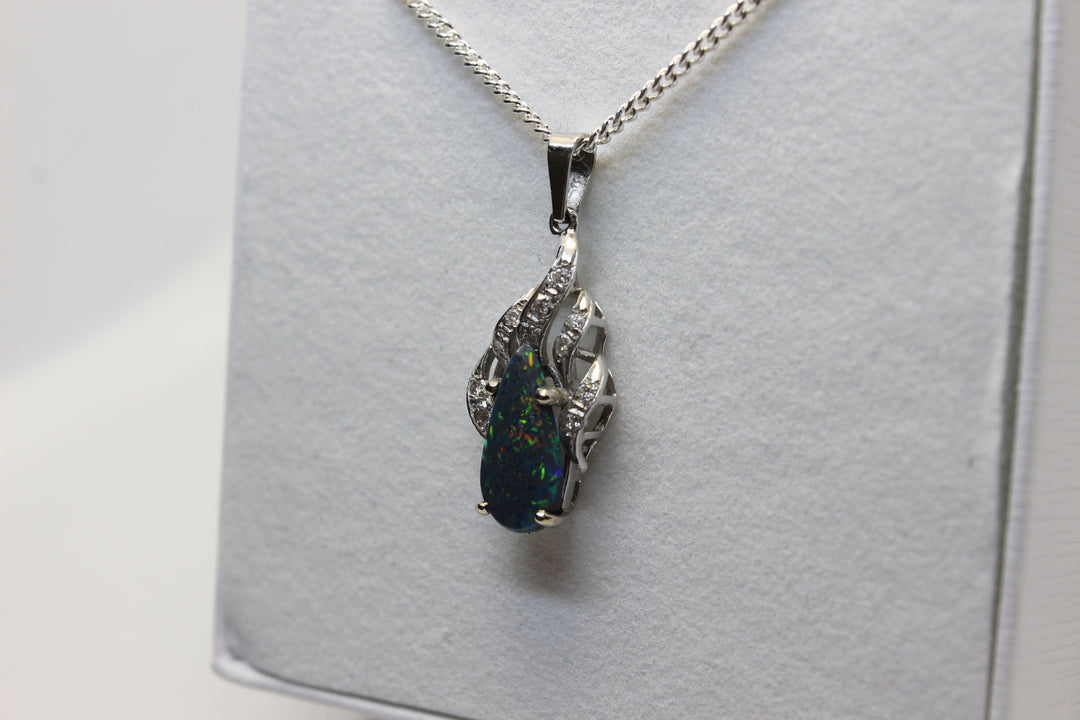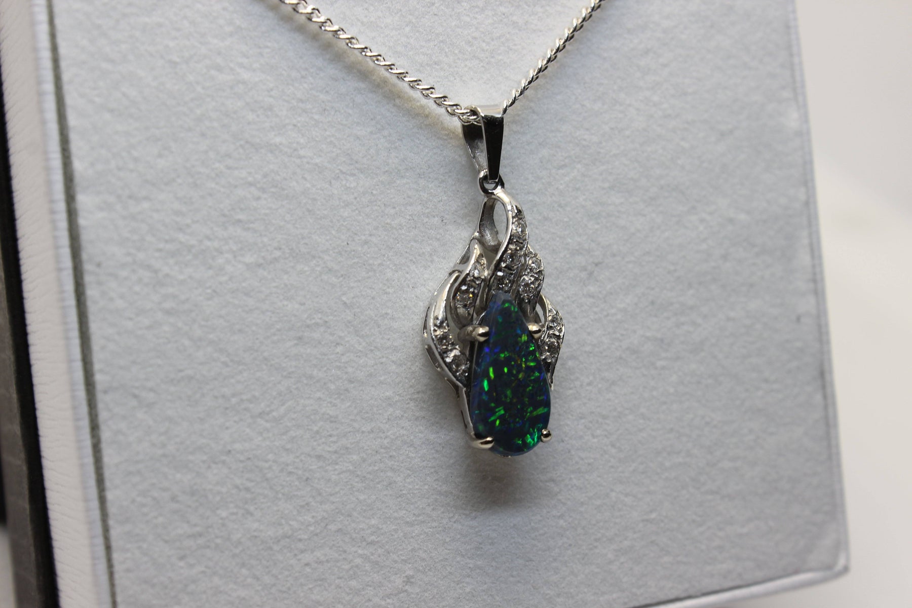 Australian Natural Black Opal Pendant in 18k White Gold Setting Pendant Australian Opal House