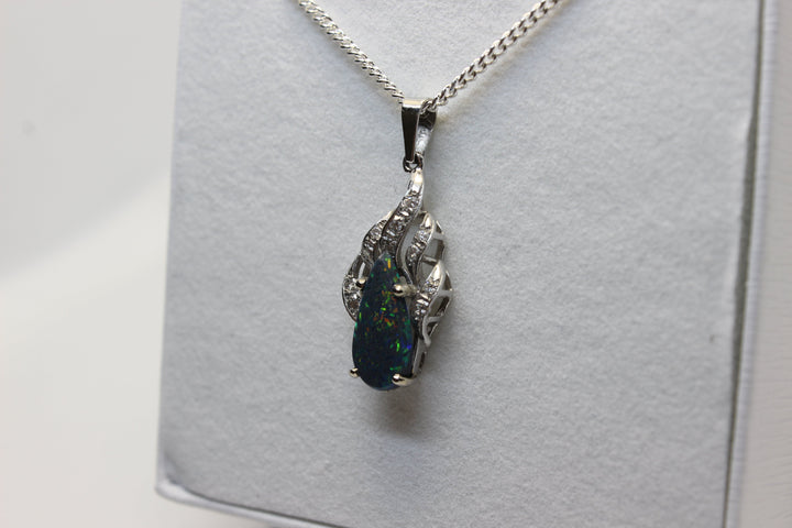 Australian Natural Black Opal Pendant in 18k White Gold Setting