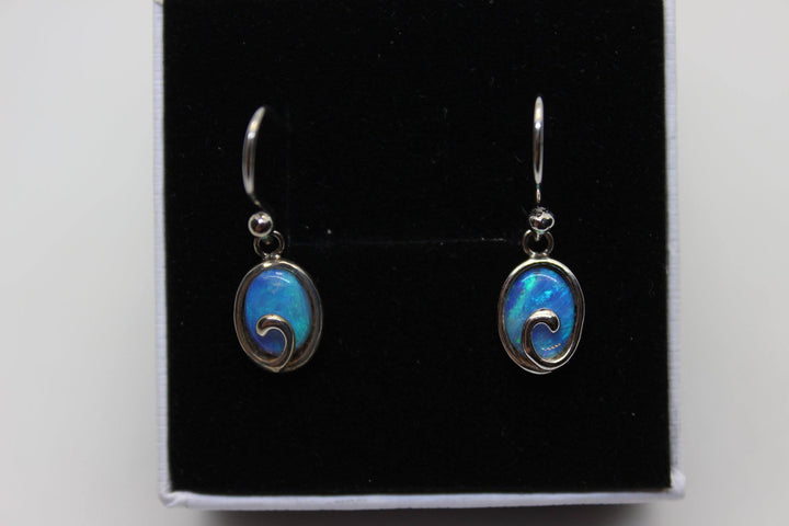 Australian Natural Solid Crystal Opal Hanging Earrings Sterling Silver Setting