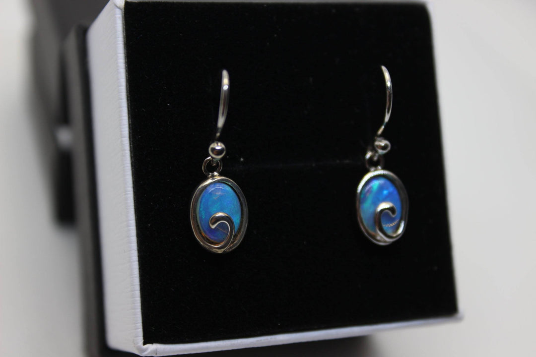A Stunning Rare Solid Crystal Opal Earrings in Sterling Silver Setting.