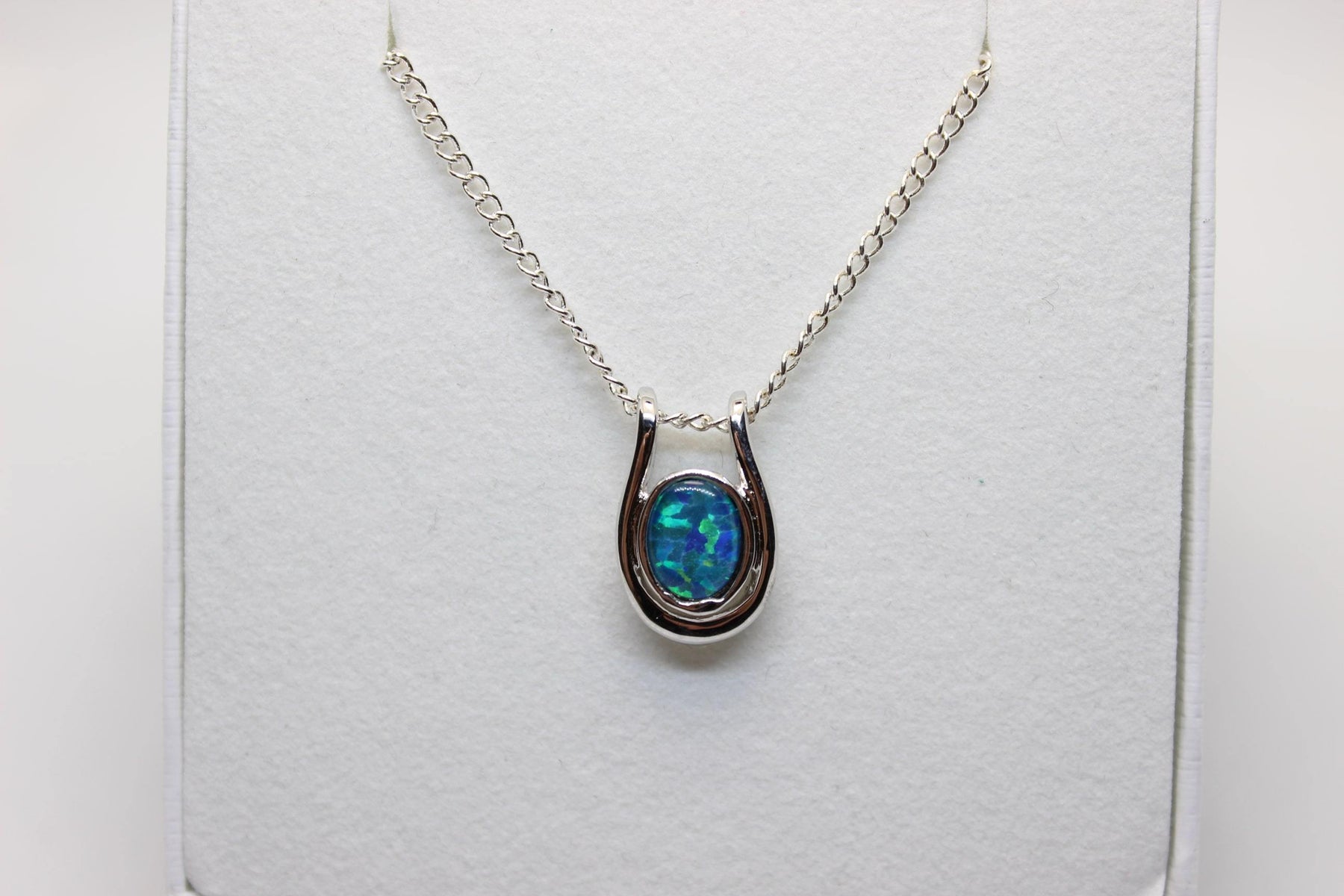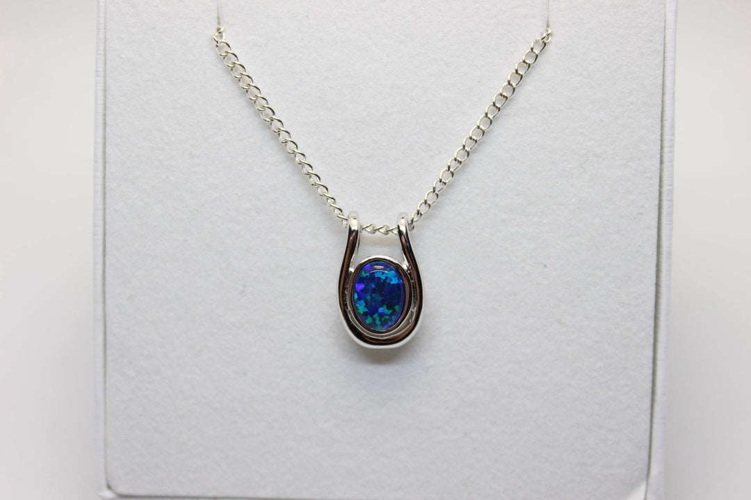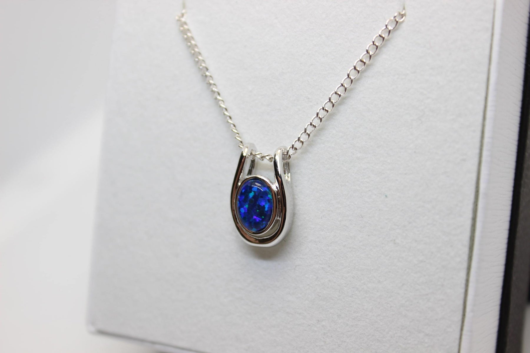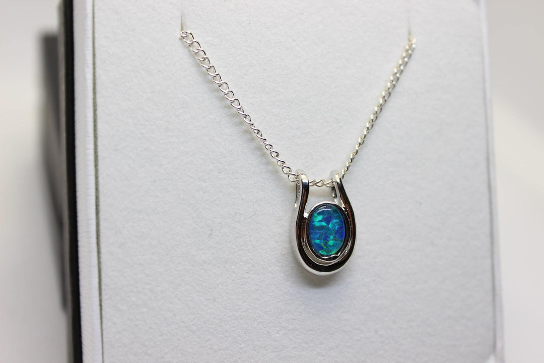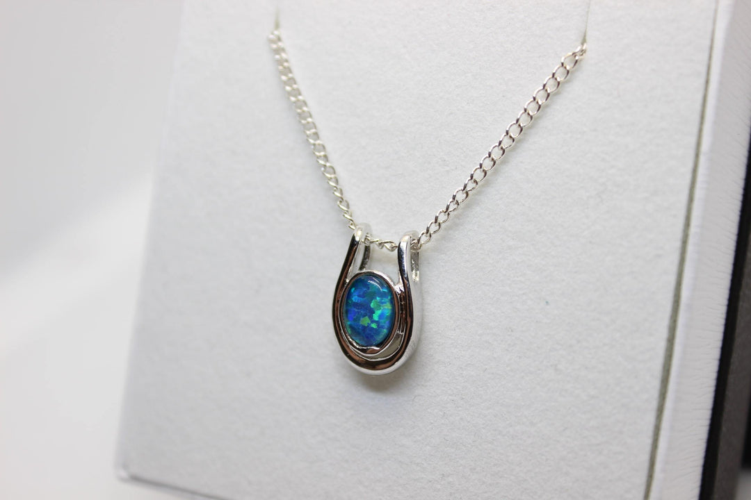 Australian Triplet Opal Pendant in Sterling Silver Setting Pendant Australian Opal House Blue