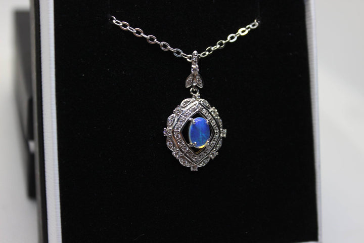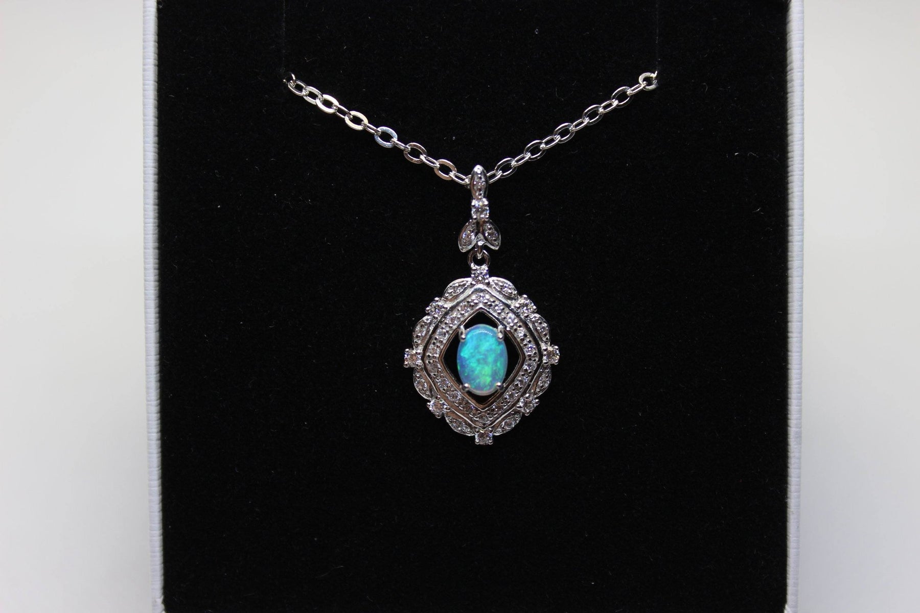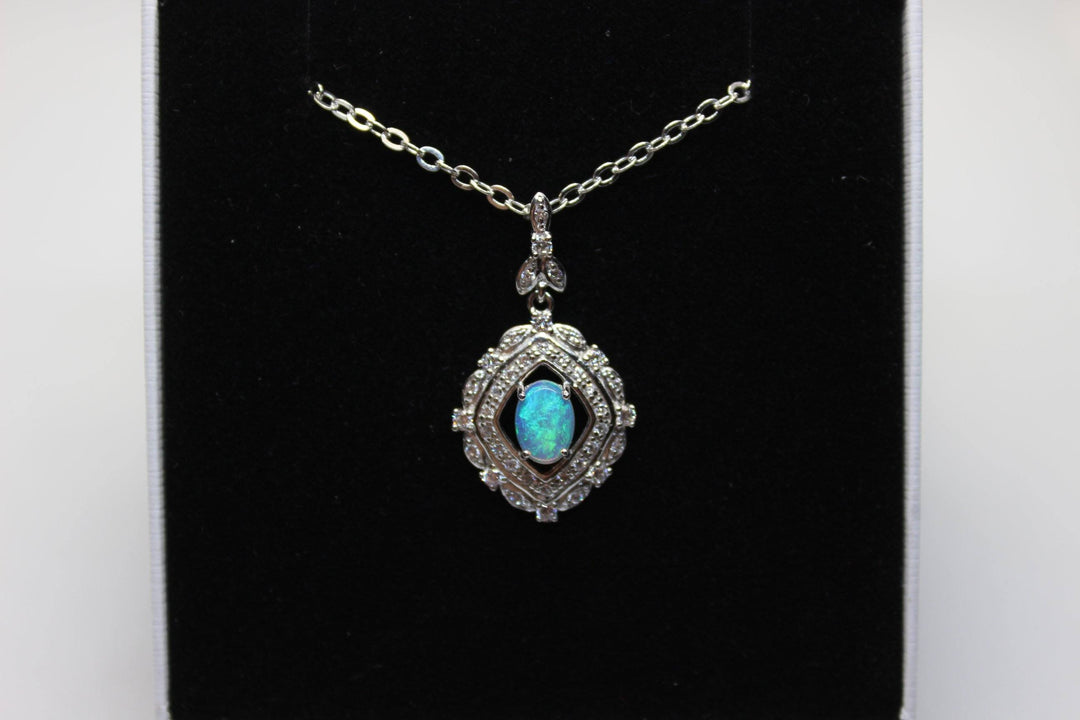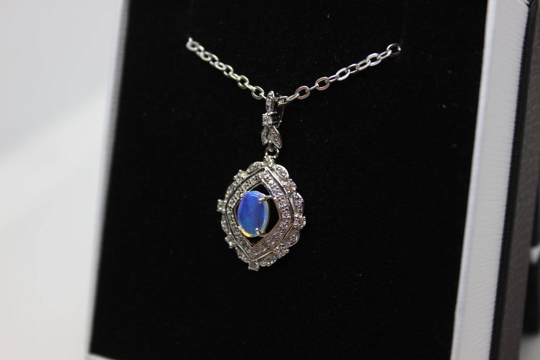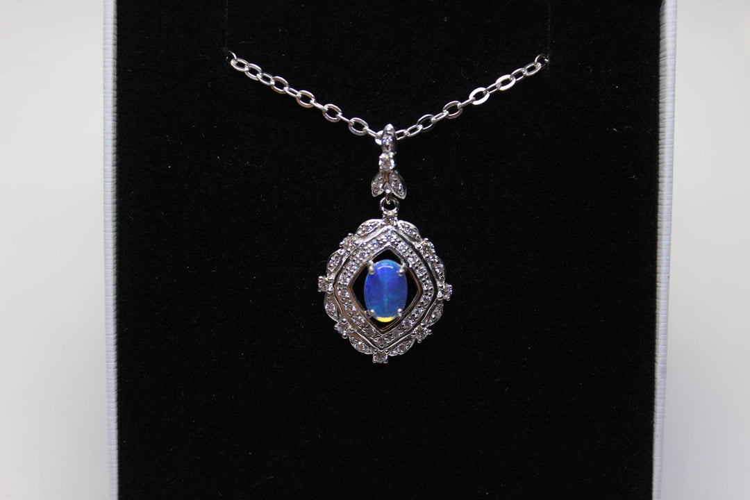Australian Natural Solid Opal Pendant Sterling Silver Setting Pendant Australian Opal House Blue