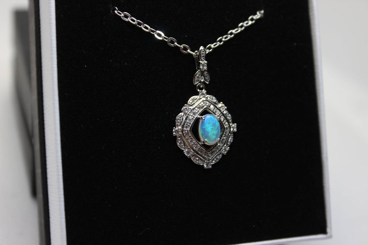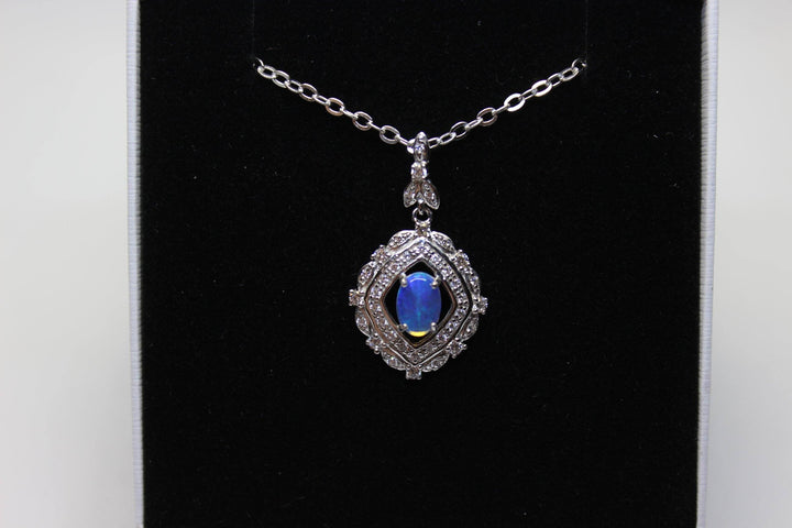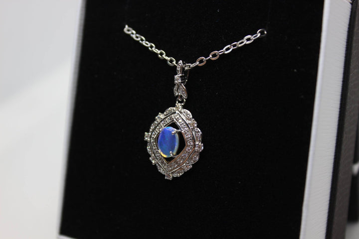 A Stunning Natural Solid Crystal Opal Pendant in Sterling Silver Setting.