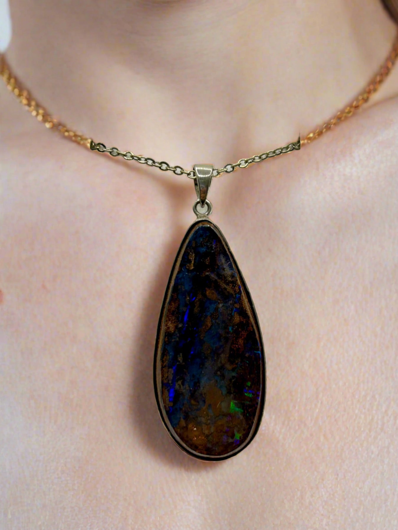 Australian Boulder Opal Pendant Sterling Silver Setting SALE